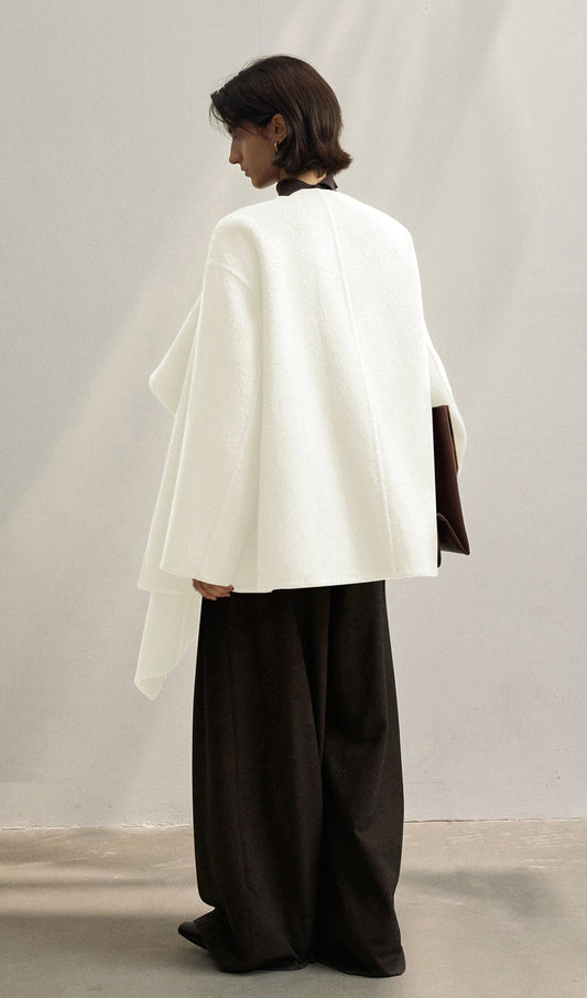 24% İndirimSolid Pelerin Stili Kaban-Beyaz
