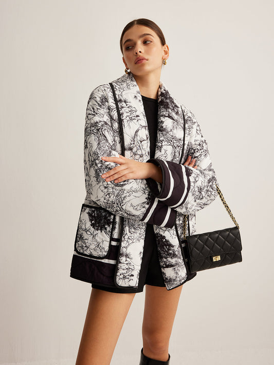 27% İndirimBaskılı Pileli Kesimli Pamuk Mont