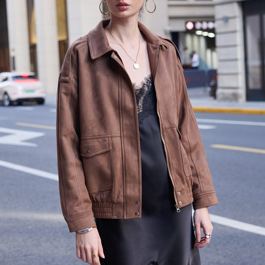 22% İndirimCep Detaylı Kahverengi Süet Mont
