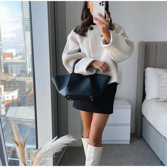 Bella Oversize Yün Dokulu Blazer Kaban