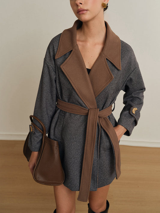 26% İndirimLiesel Kontrast Yaka Kemerli Palto
