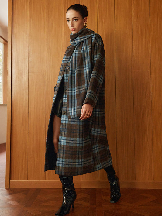 26% İndirimŞık Kare Desenli Düğmeli Uzun Palto