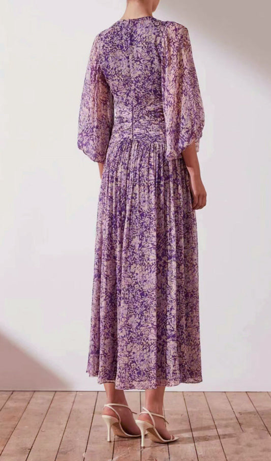 28% İndirimZélie Mor Pullu Pileli Midi Elbise