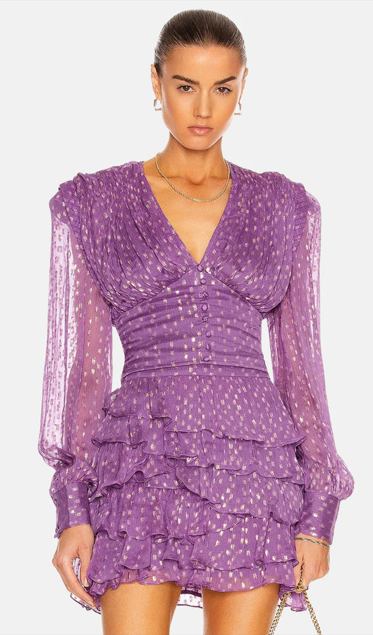 30% İndirimHonorine Mor İşlemeli Fiyonk Mini Elbise