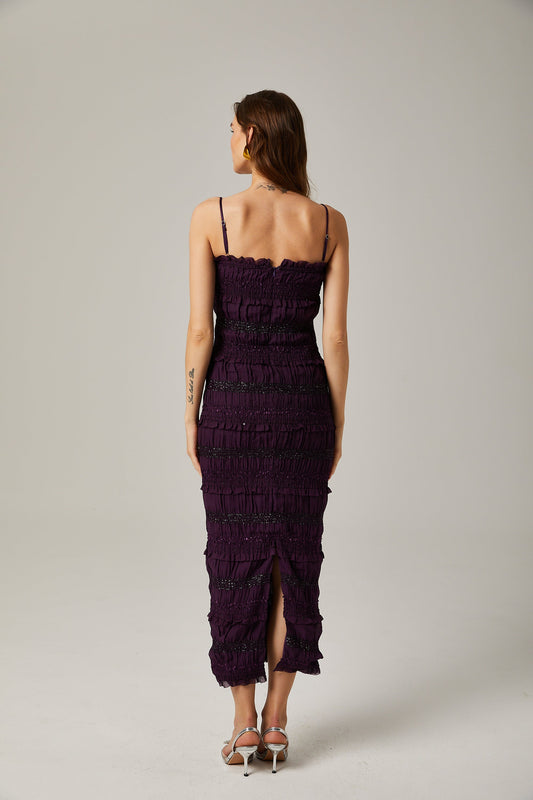 25% İndirimLaurie Spaghetti Sequin Midi Elbise, Mor