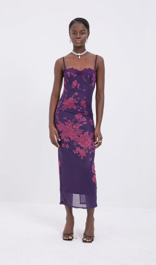 30% İndirimDelphine Mor Dantelli Midi Elbise