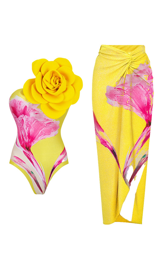 39% İndirimTek Parça Sarı Çiçekli Mayo-Pareo Takım Sarı