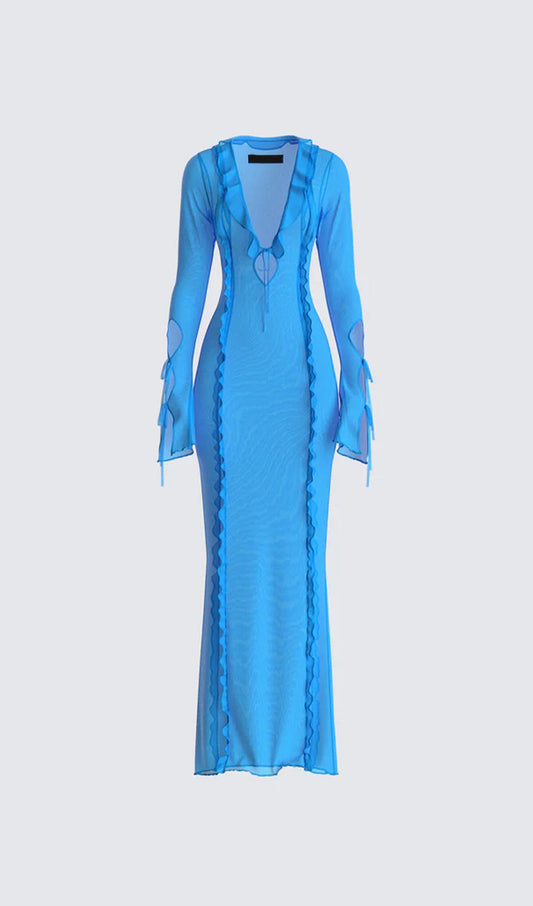 32% İndirimFlorence Mavi Fırfırlı Maksİ Pareo