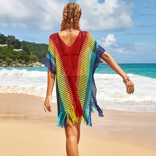 34% İndirimGökkuşağı Örgü Kroşe Plaj Pareo - Turuncu