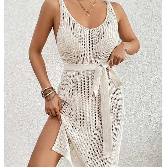 34% İndirimSırtı Açık Dalgalı Kroşe Örgü Plaj Pareo- Beyaz