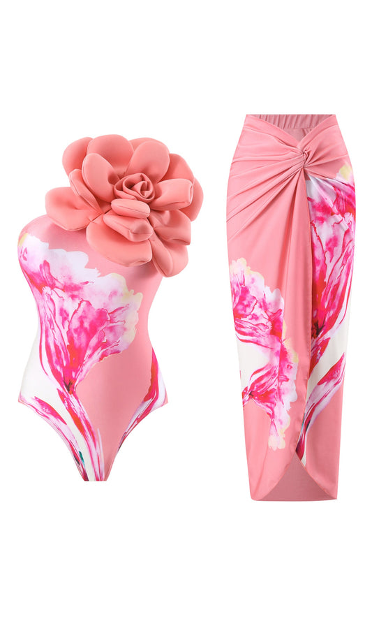 39% İndirimTek ParçaPembe Çiçekli Mayo-Pareo Takım-Pembe