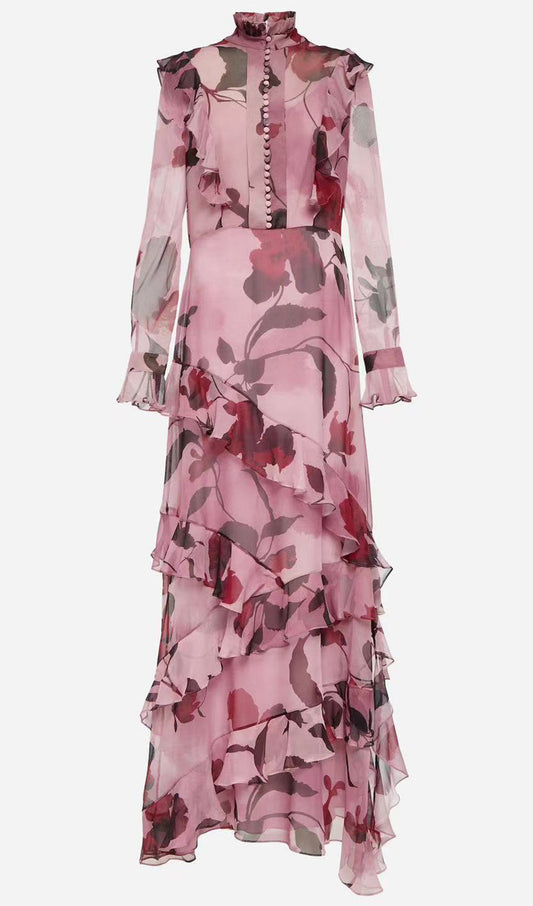 30% İndirimÇiçekli Uzun Kollu Fırfırlı Maksi Elbise