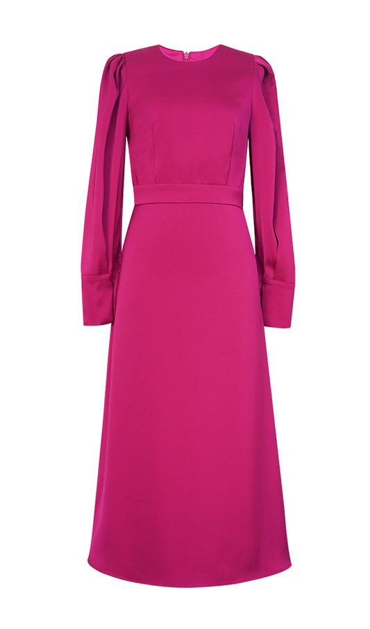 32% İndirimGül Kırmızısı Yüksek Bel Solid Midi Elbise
