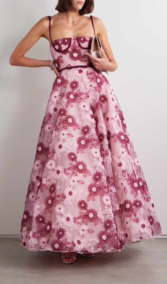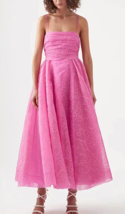 30% İndirimİşlemeli Fit ve Flare Midi Askılı Elbise Pembe