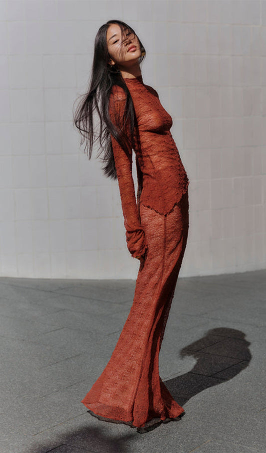 İki Parçalı Uzun Kollu Kroşe Maxi Etek ve Üst Takım