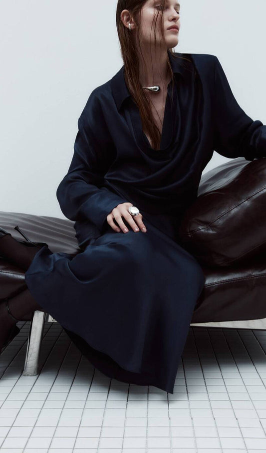 33% İndirimSaten Viskon Bluz Üst-Koyu Mavi