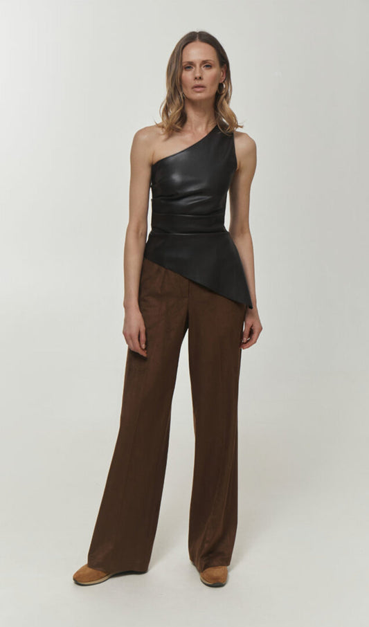29% İndirimDüz Deri Asimetrik Üst-Kahverengi