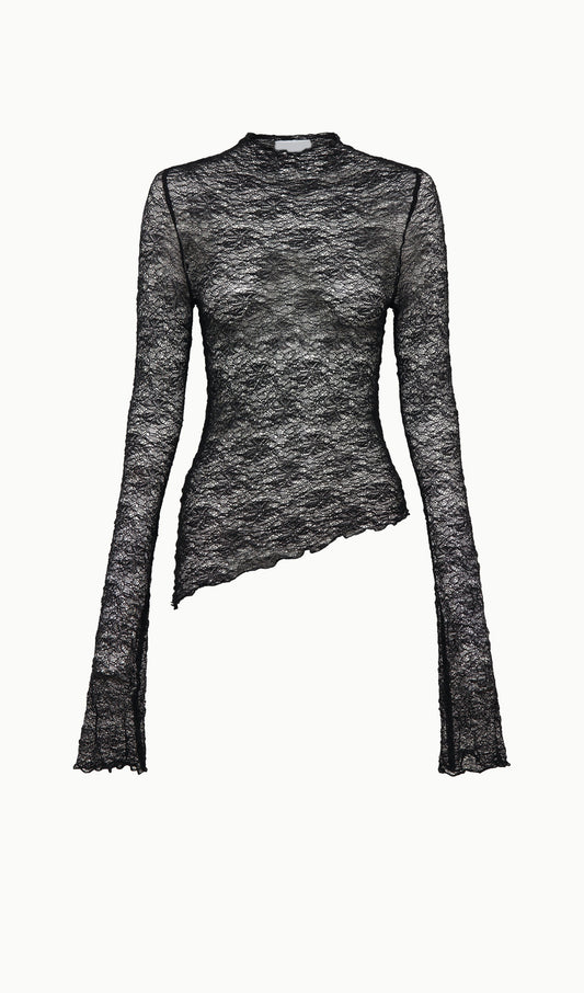28% İndirimŞeffaf Dantel Uzun Kollu Üst - Siyah