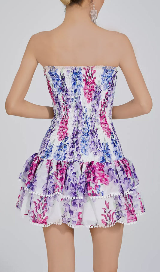 24% İndirimTüp Üst Çiçekli Fırfırlı Mini Elbise