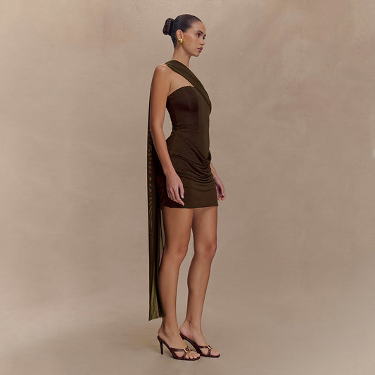23% İndirimCyren Büzgülü Eşarp Mini Elbise Gök Mavisi