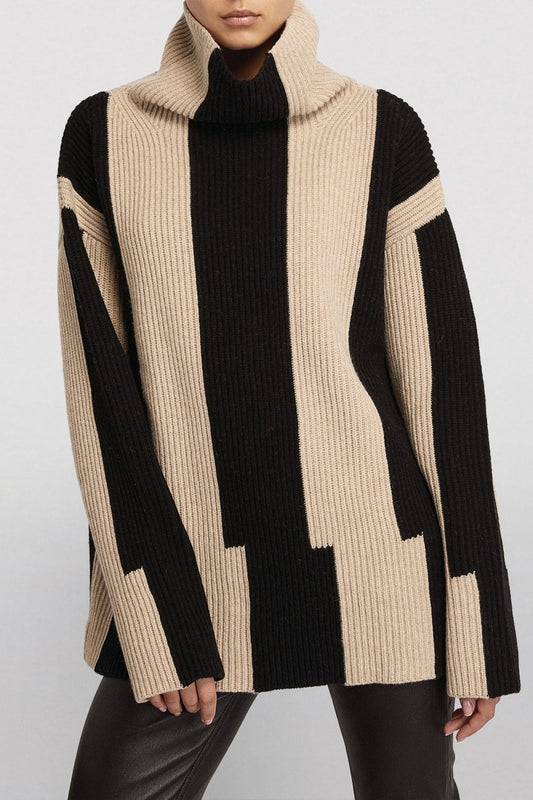 Kolorowy sweter z wysokim kołnierzem Penelope