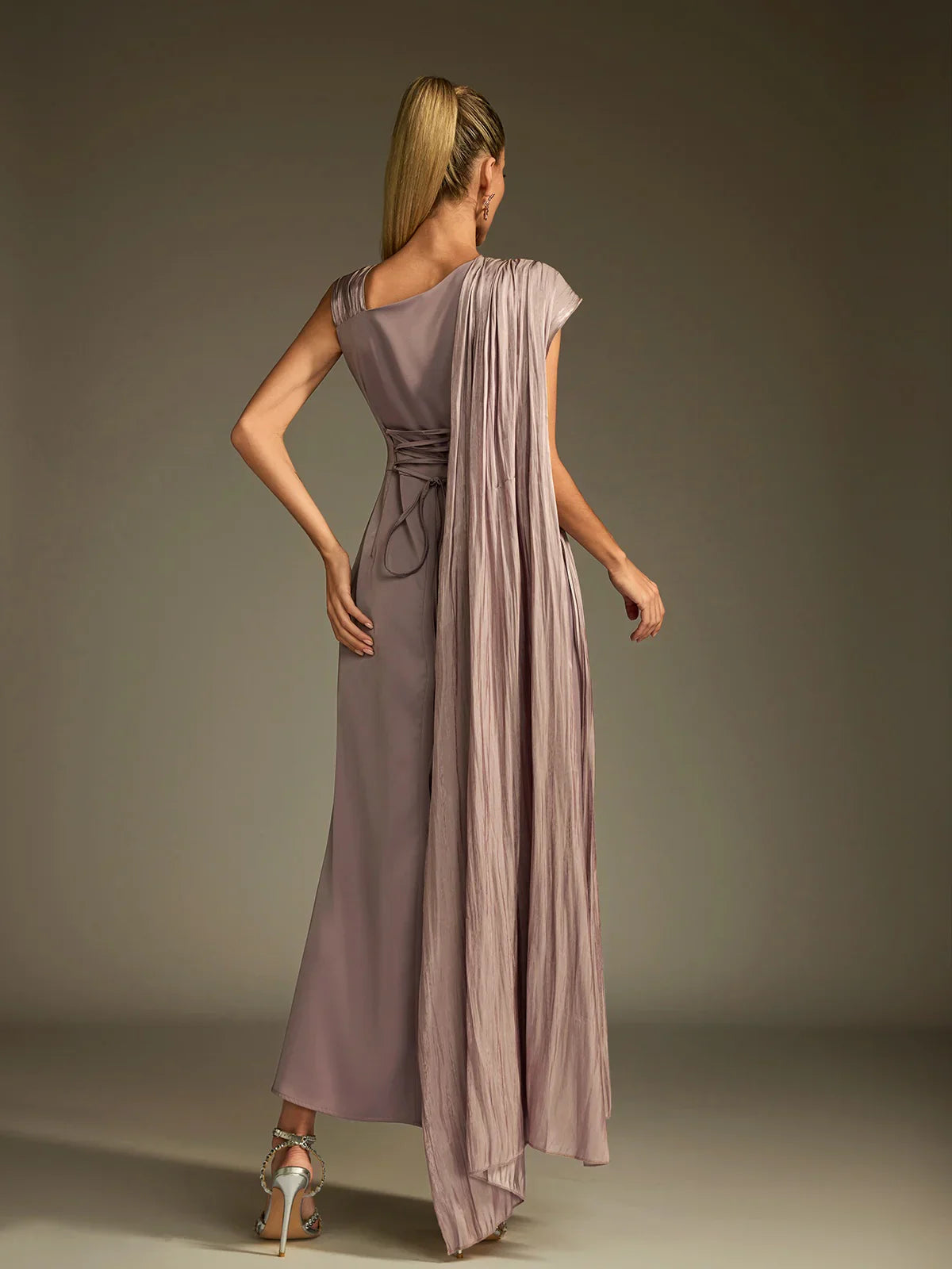 - Jednoramienna, drapowana góra tworzy szlachetny, boski efekt.