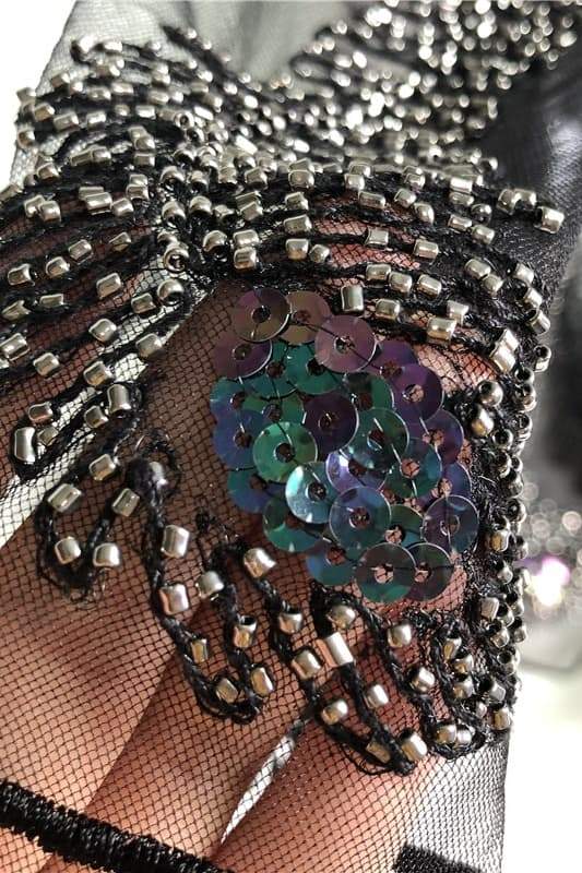 Sukienka mini z wiązaniem na szyi i perłowymi cekinami z piórami z Bronte