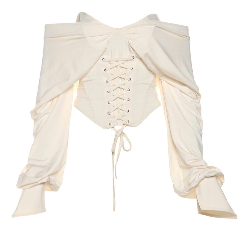 Cechy: Gorset z fiszbinami, zapięciem z koronki i marszczeniami dla wyjątkowego wyglądu. Krótki krój.