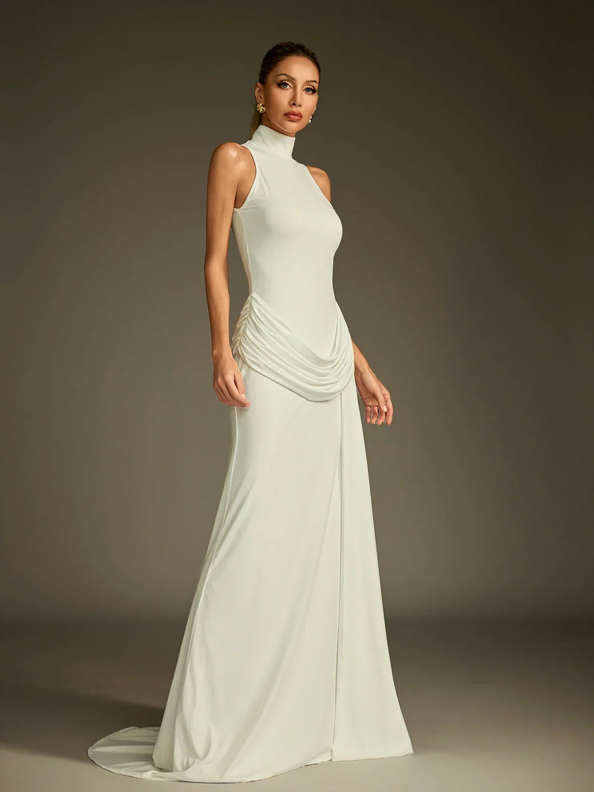 Sukienka Elise z wysokim dekoltem i drapowaniem