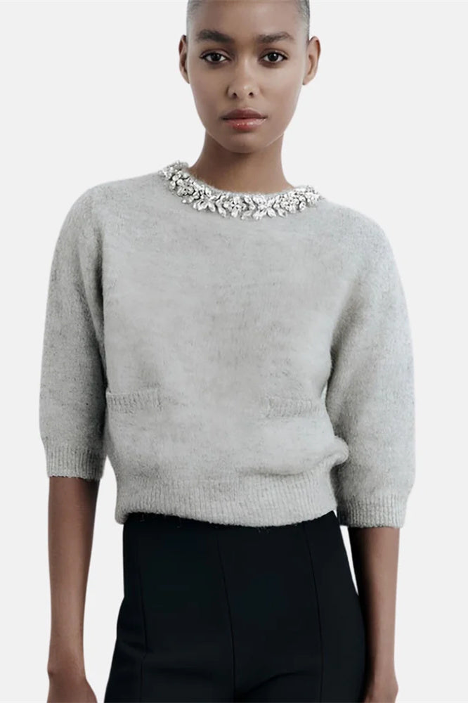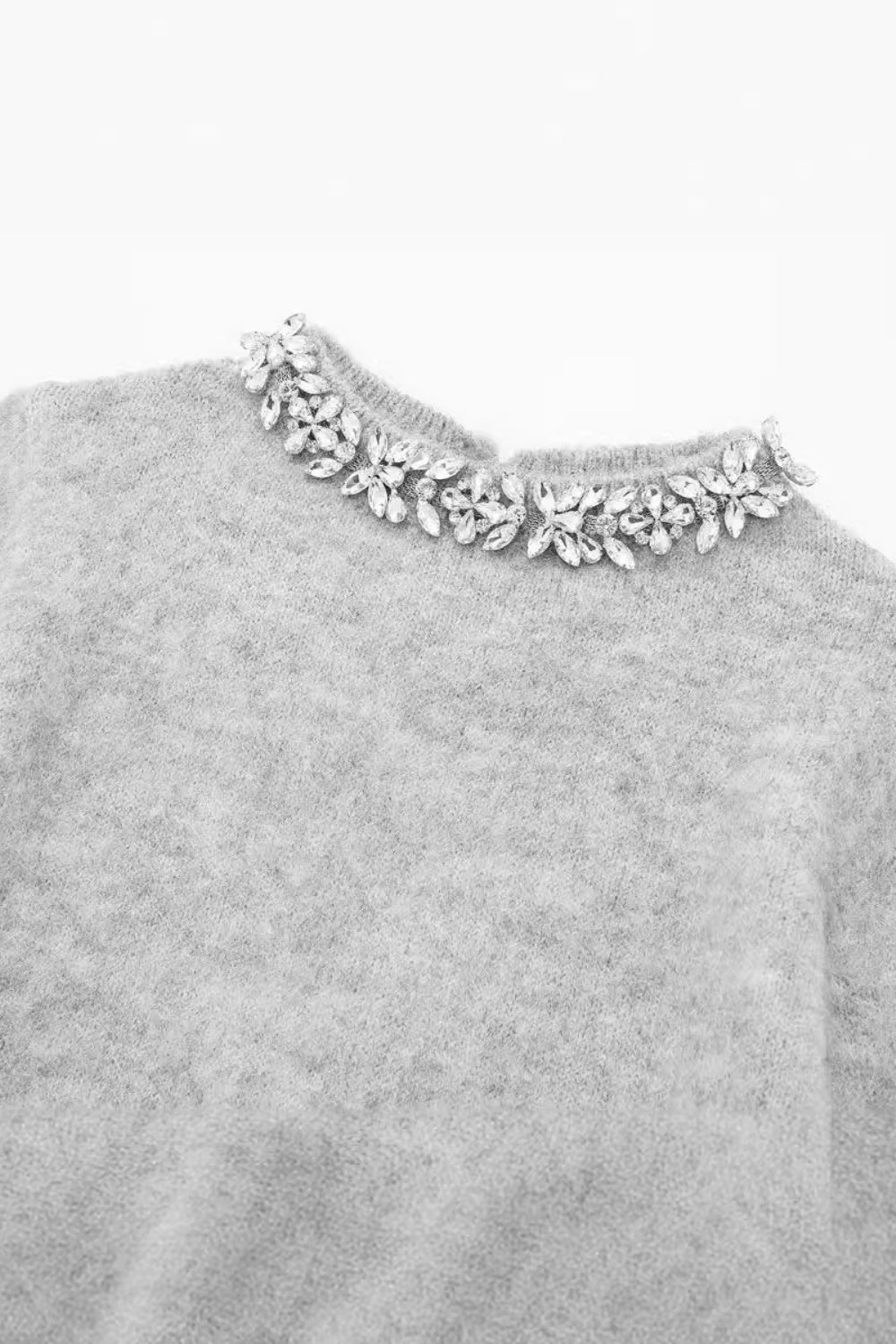 Sweter dzianinowy z okrągłym dekoltem i zdobiony kryształkami