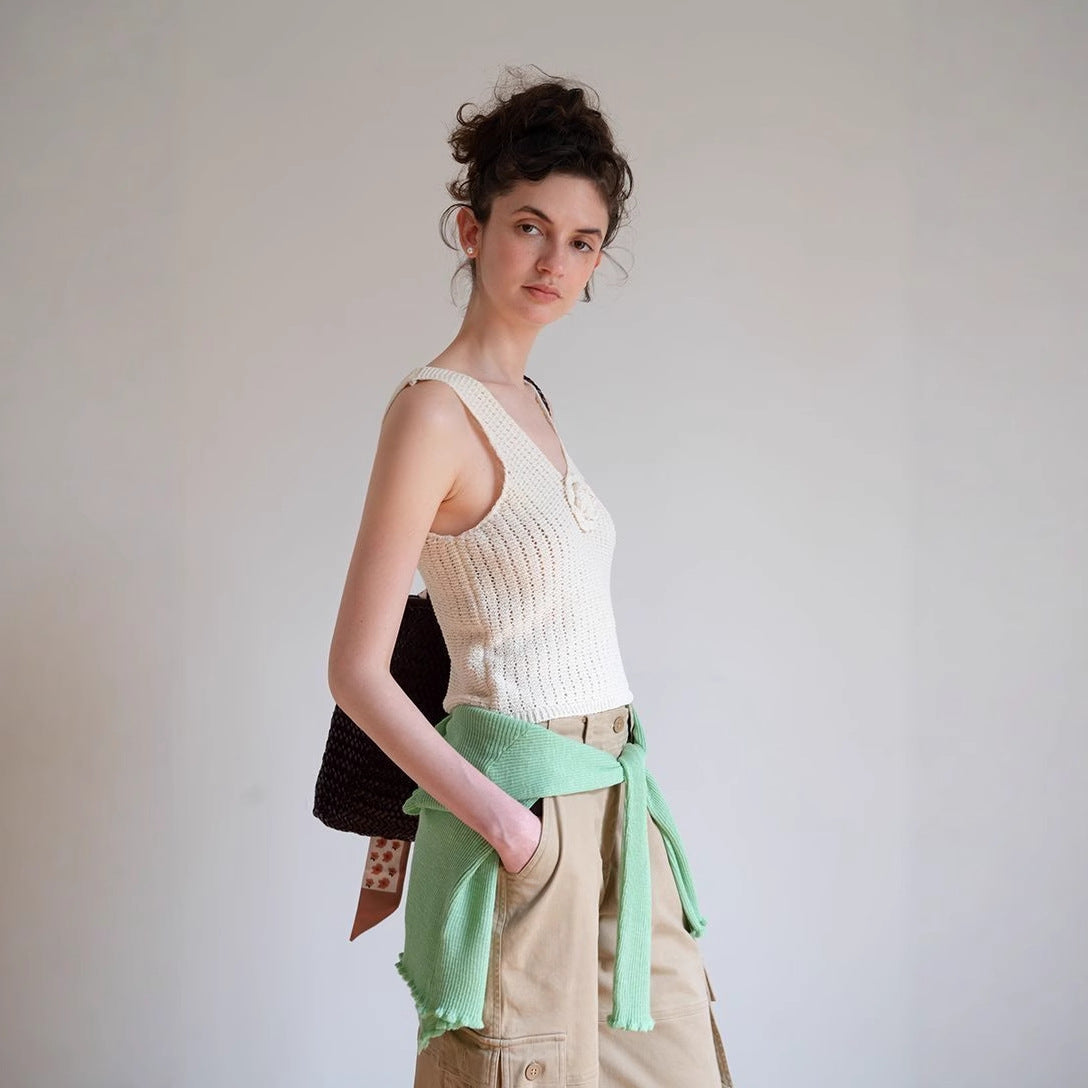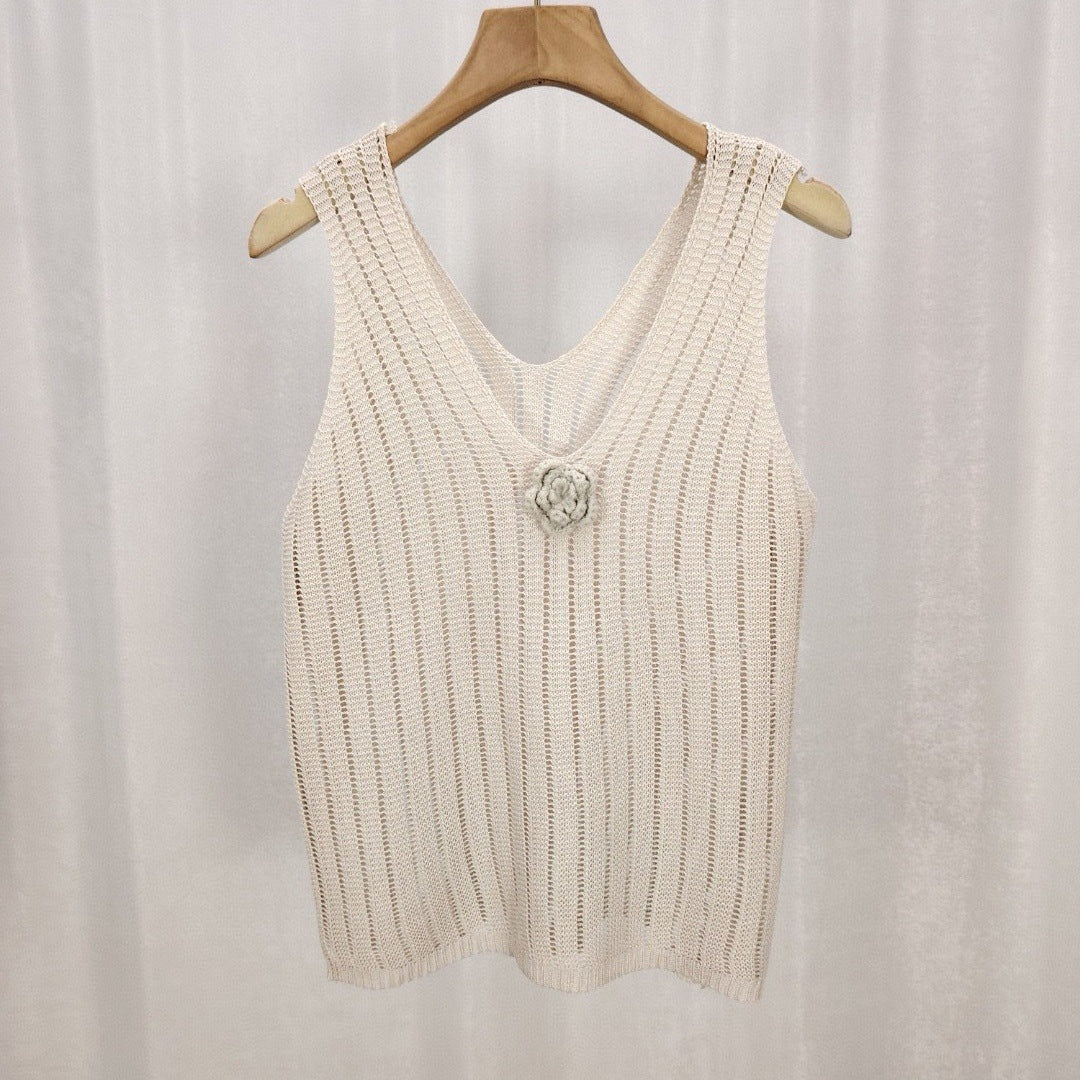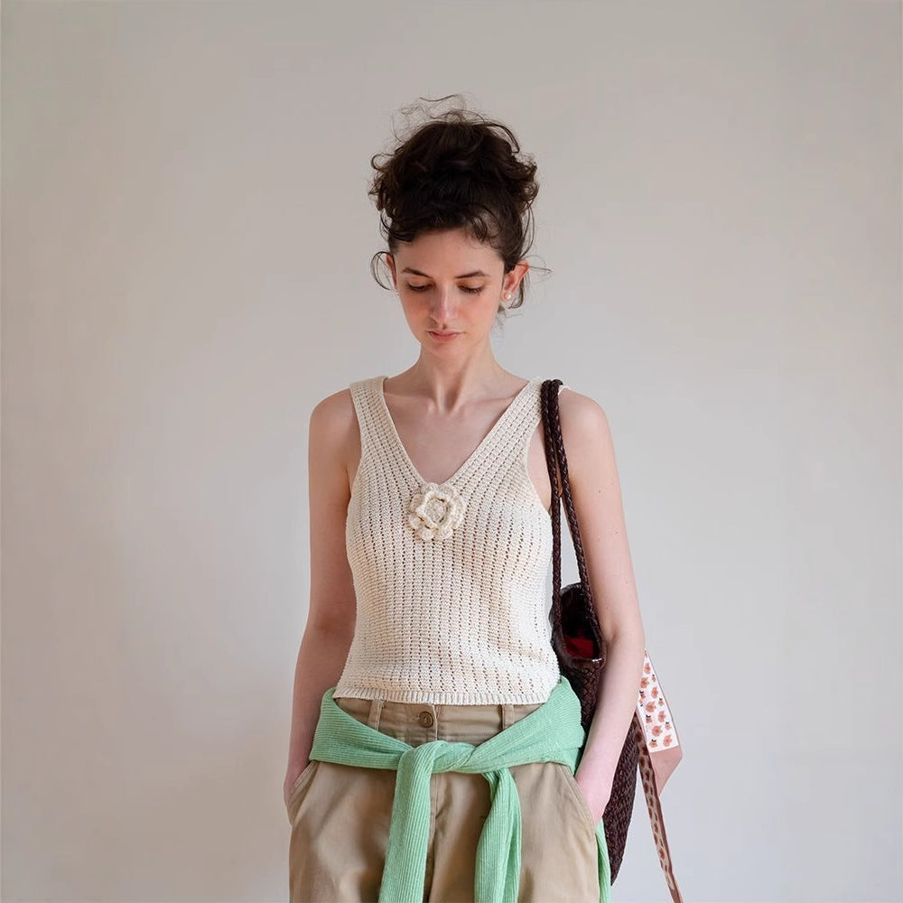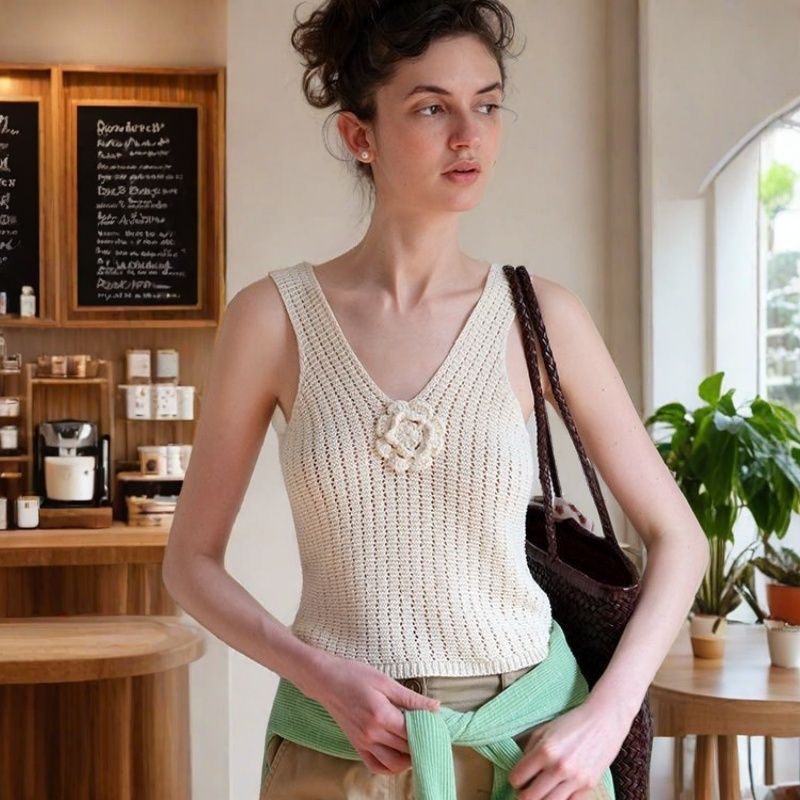 Bezrękawnik dzianinowy z kwiatowymi zdobieniami