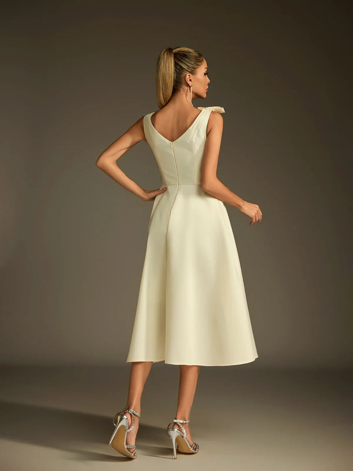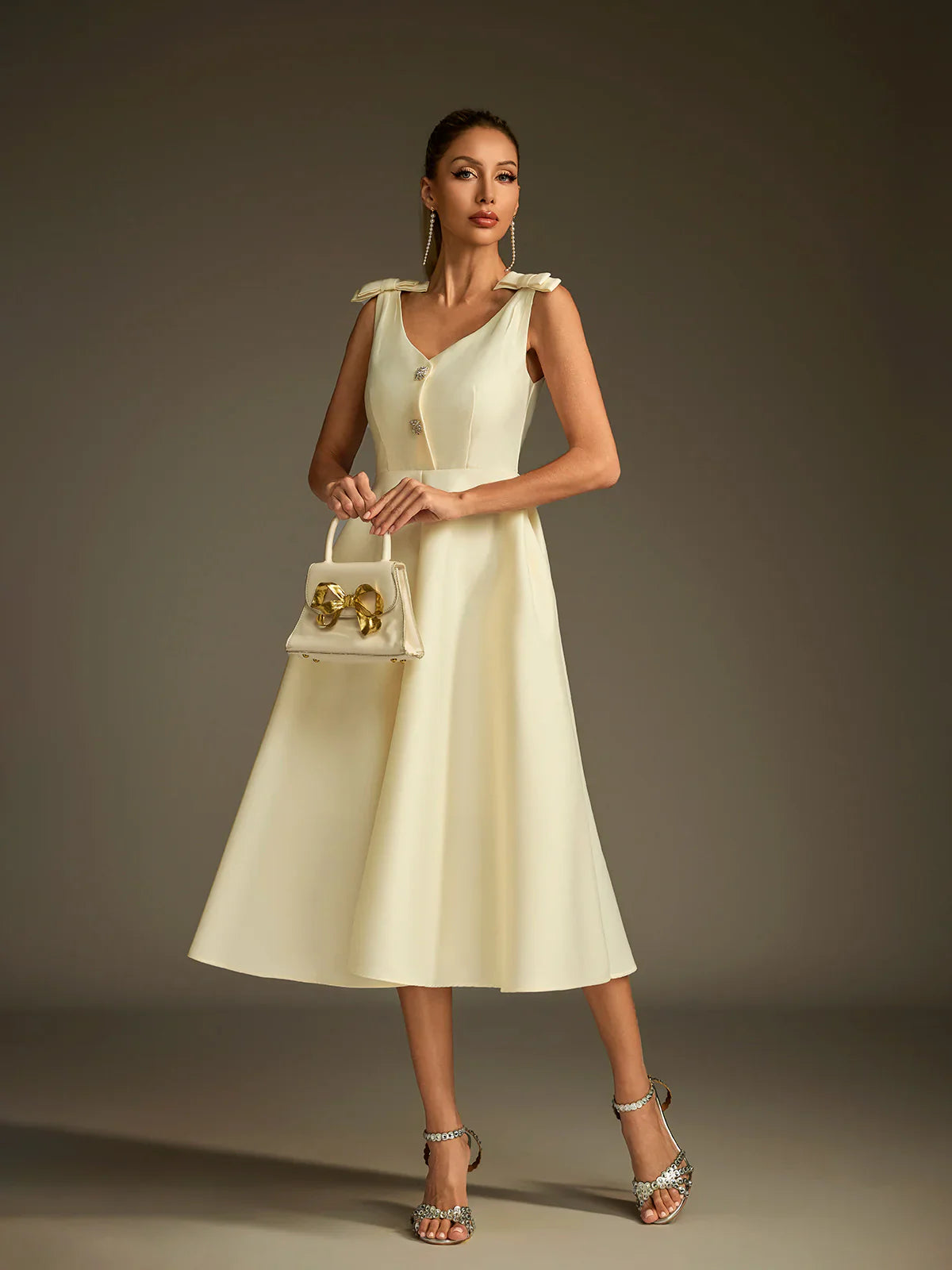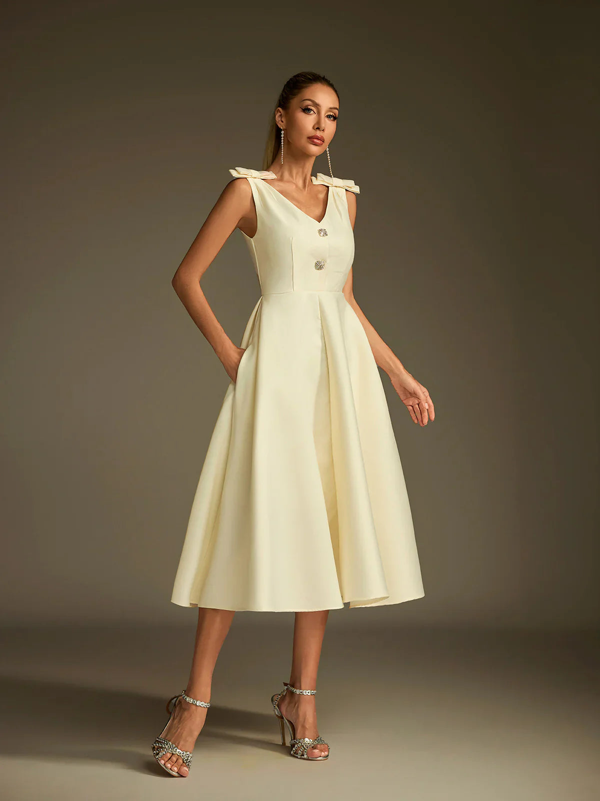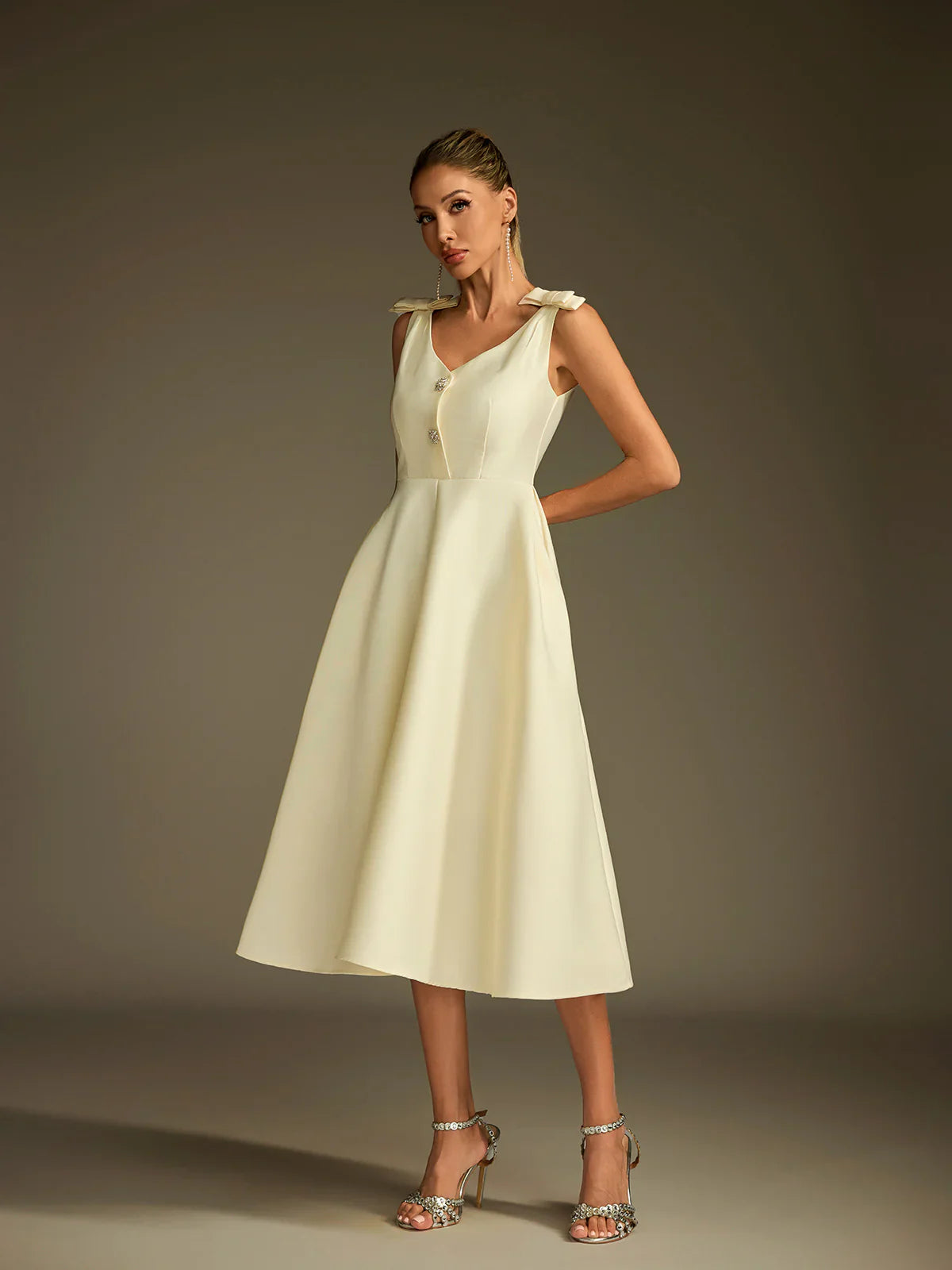 Sukienka midi Colette z satyny z rozkloszowaną nogawką