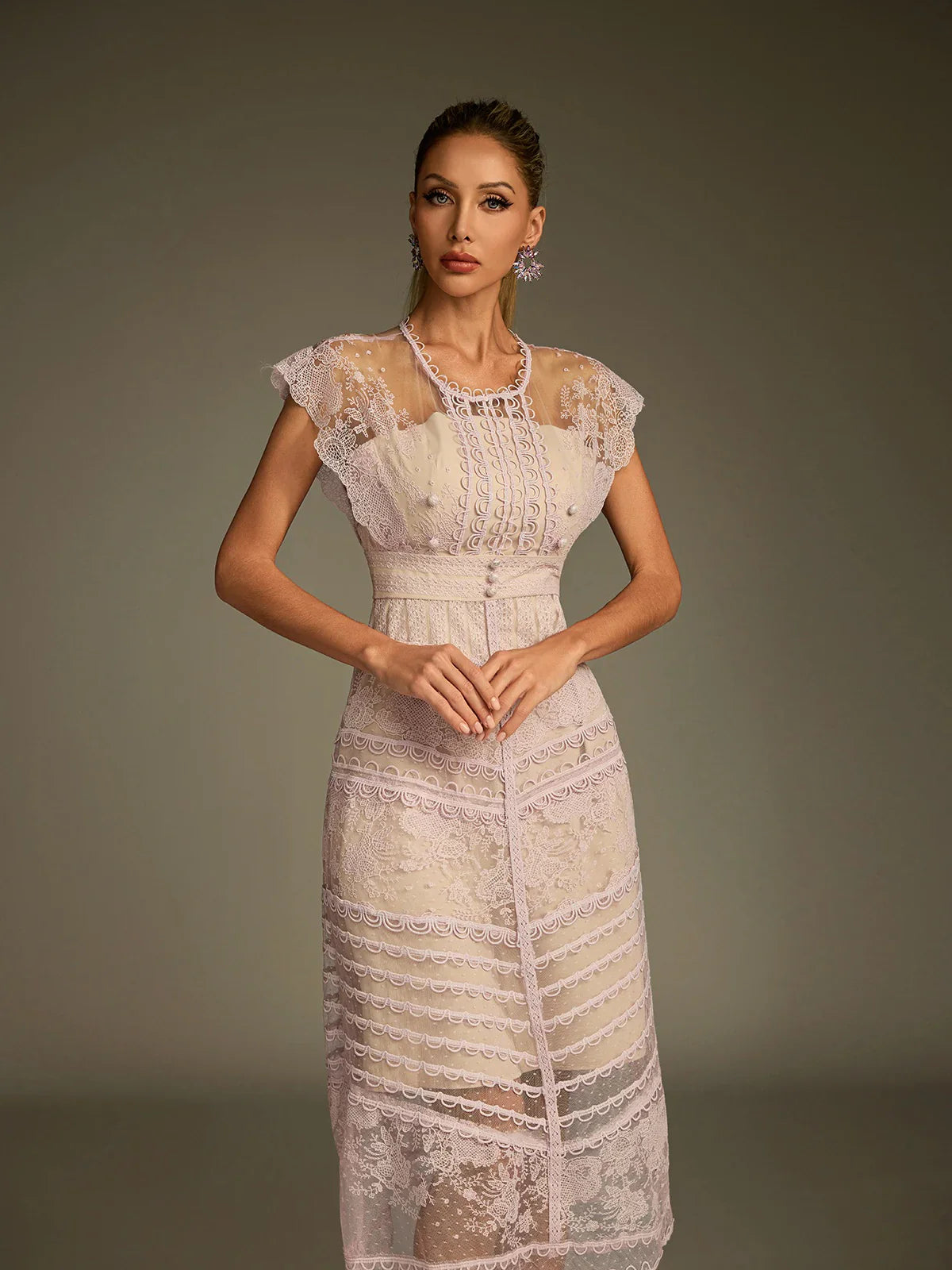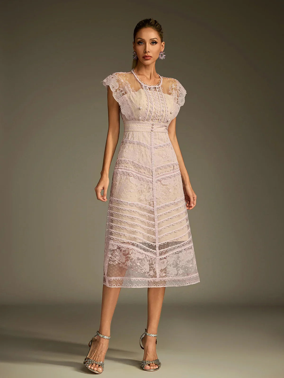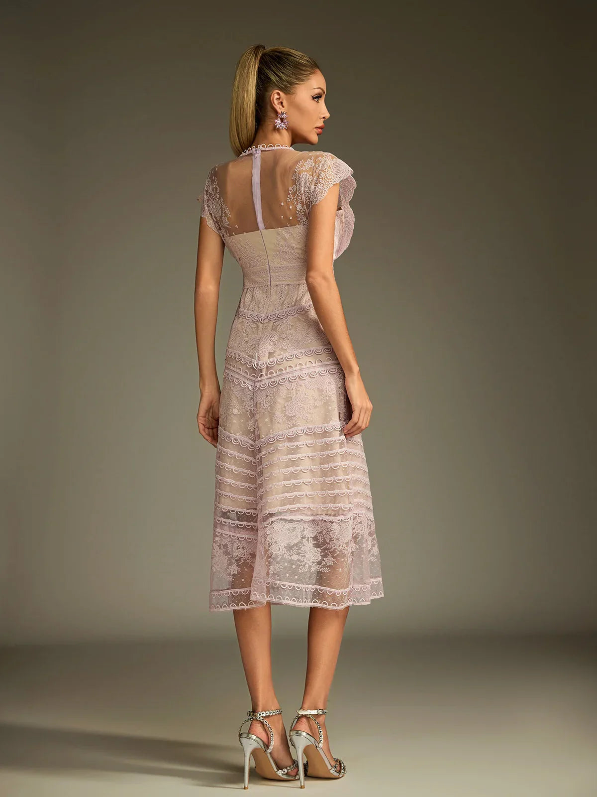 Sukienka midi z koronką i przezroczystością Eclat