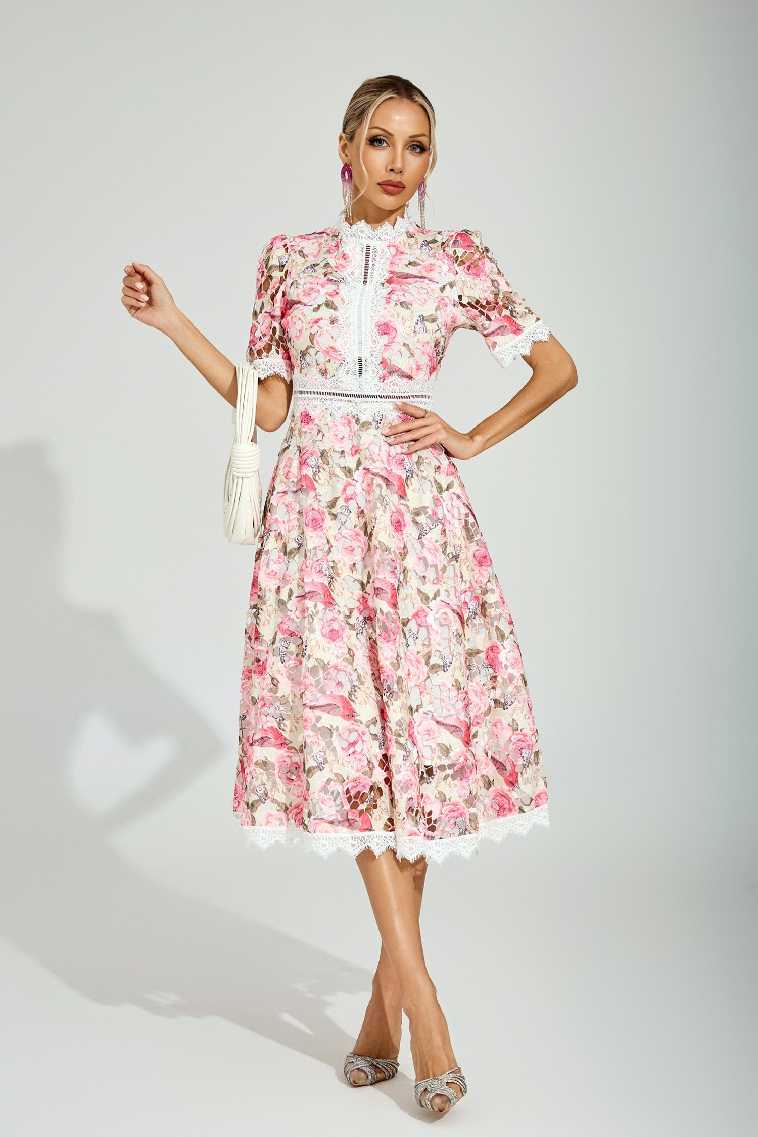 Sukienka midi z koronką Rose Éclat