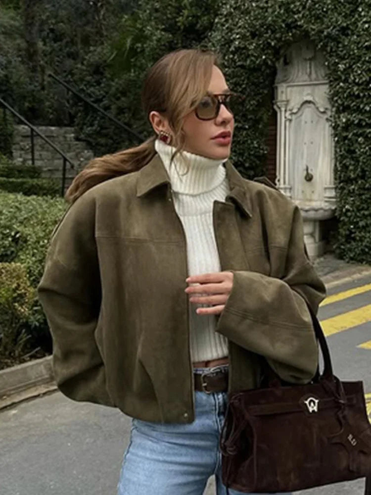 Dwurzędowa kurtka sezonowa z efektem zamszu
