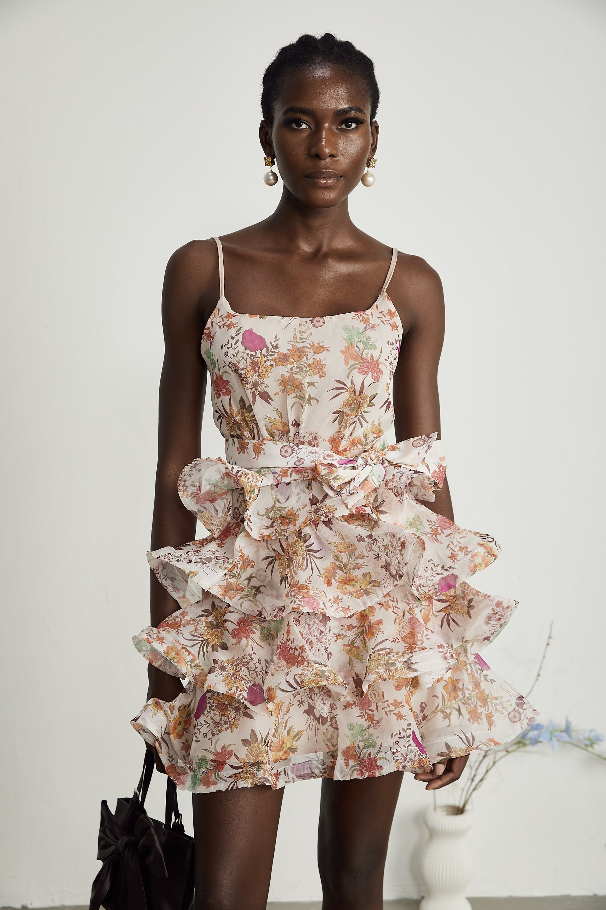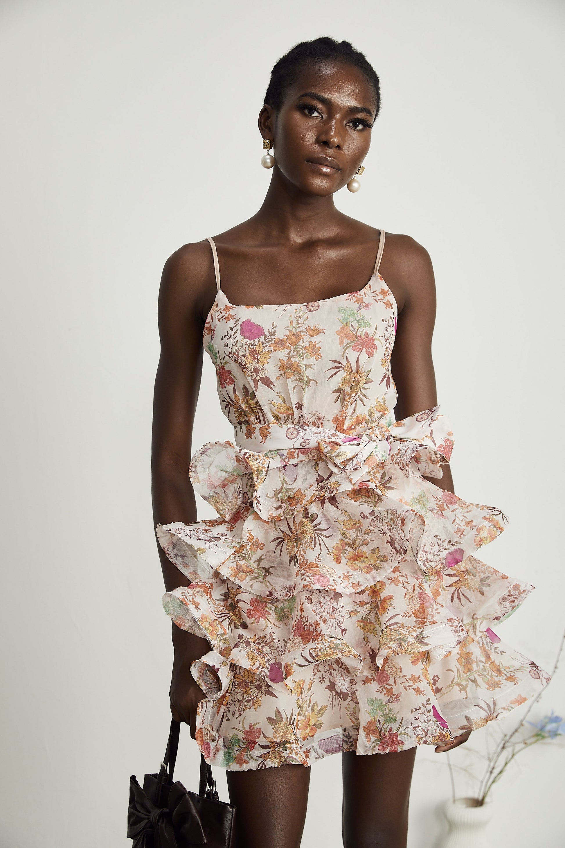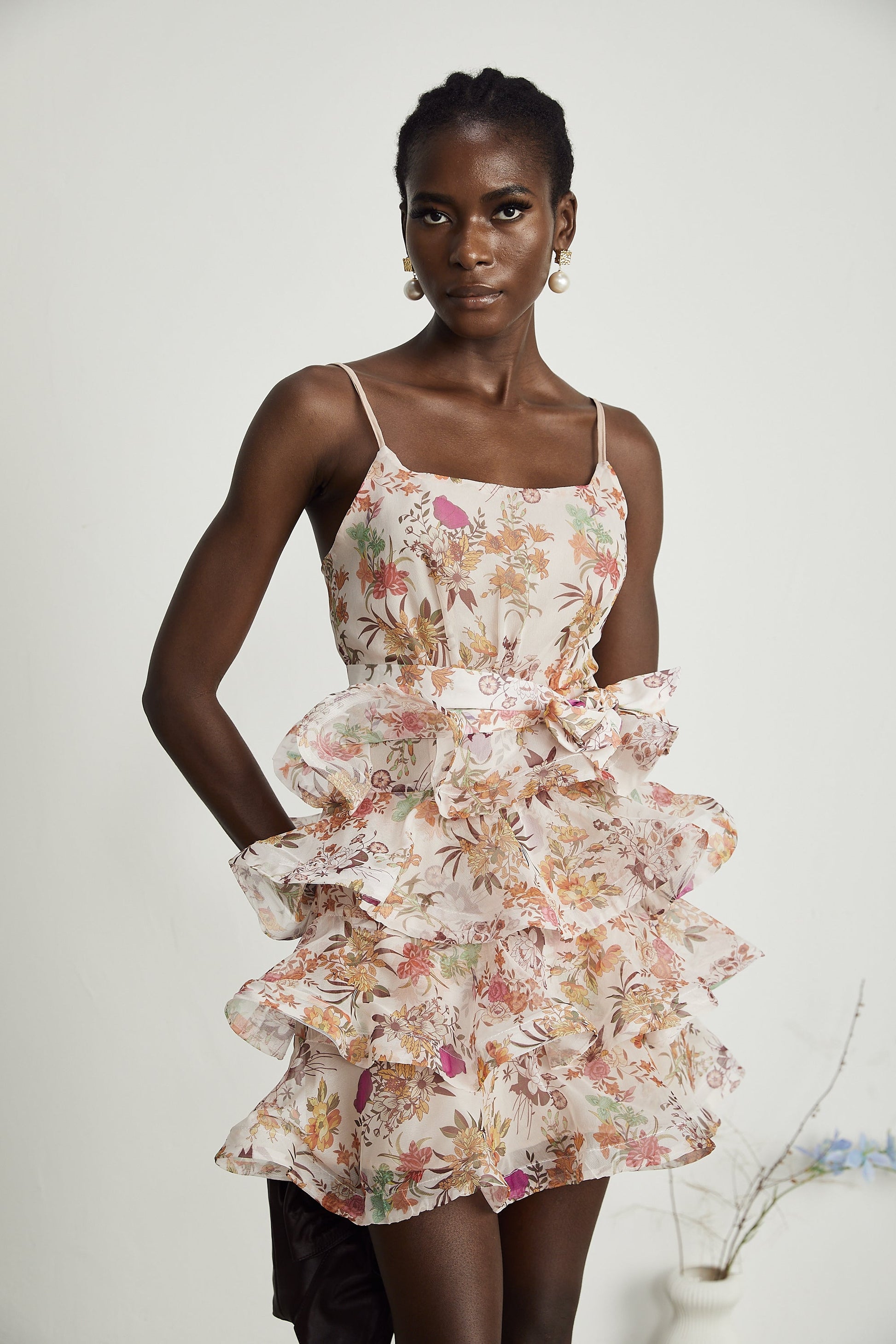 Camille Fırfırlı Çiçek Desenli Mini Elbise