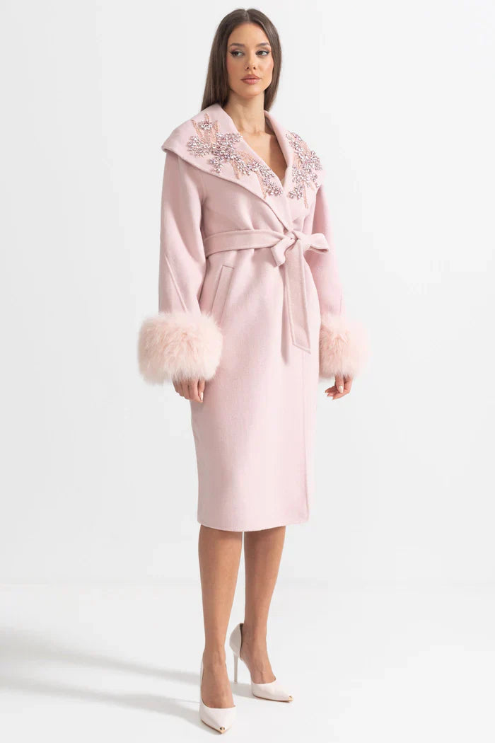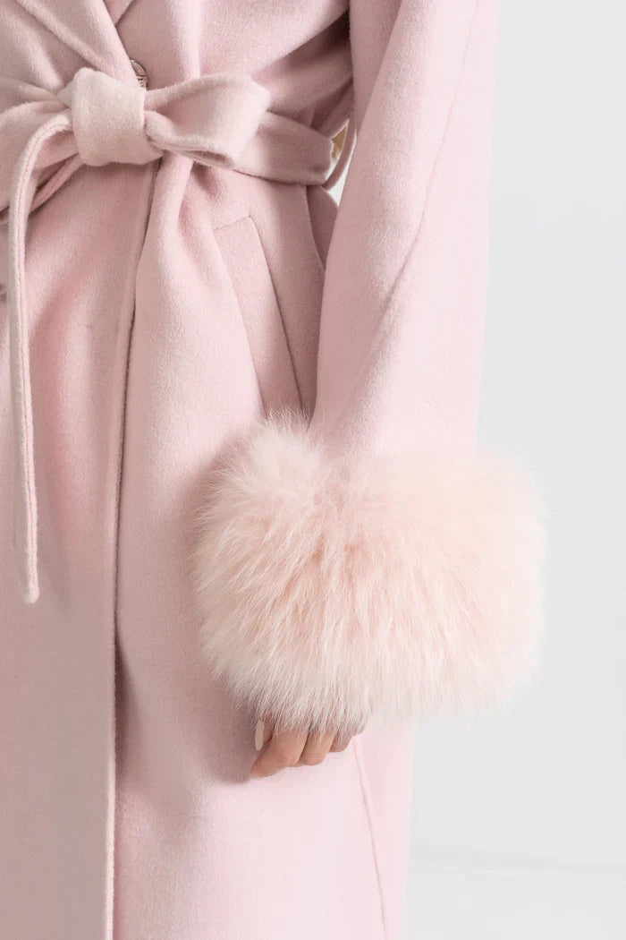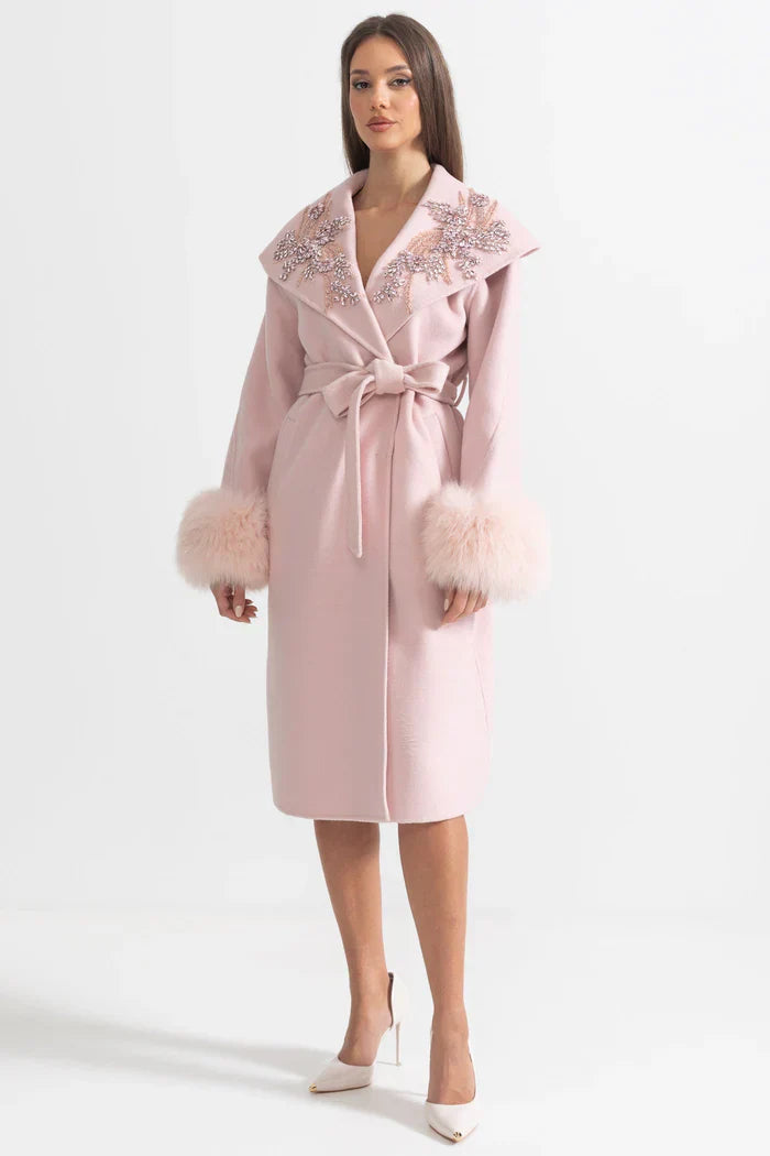 Tilki Kürk Manşetli ve 3D Çiçek Detaylı Kaşmir Palto