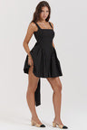 Christie Siyah Mini Elbise, zarif inci süslemeli zarif kare yakasıyla öne çıkıyor. Esnek olmayan krep kumaştan üretilen bu elbise, omuz askıları ve kalçalarda toplanan gode panelleriyle zarif bir şıklık sunuyor ve zarif bir hareket özgürlüğü sağlıyor.