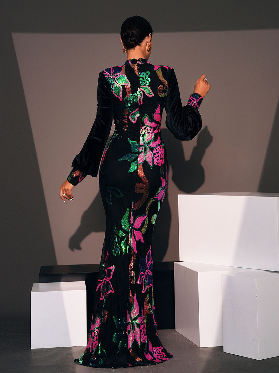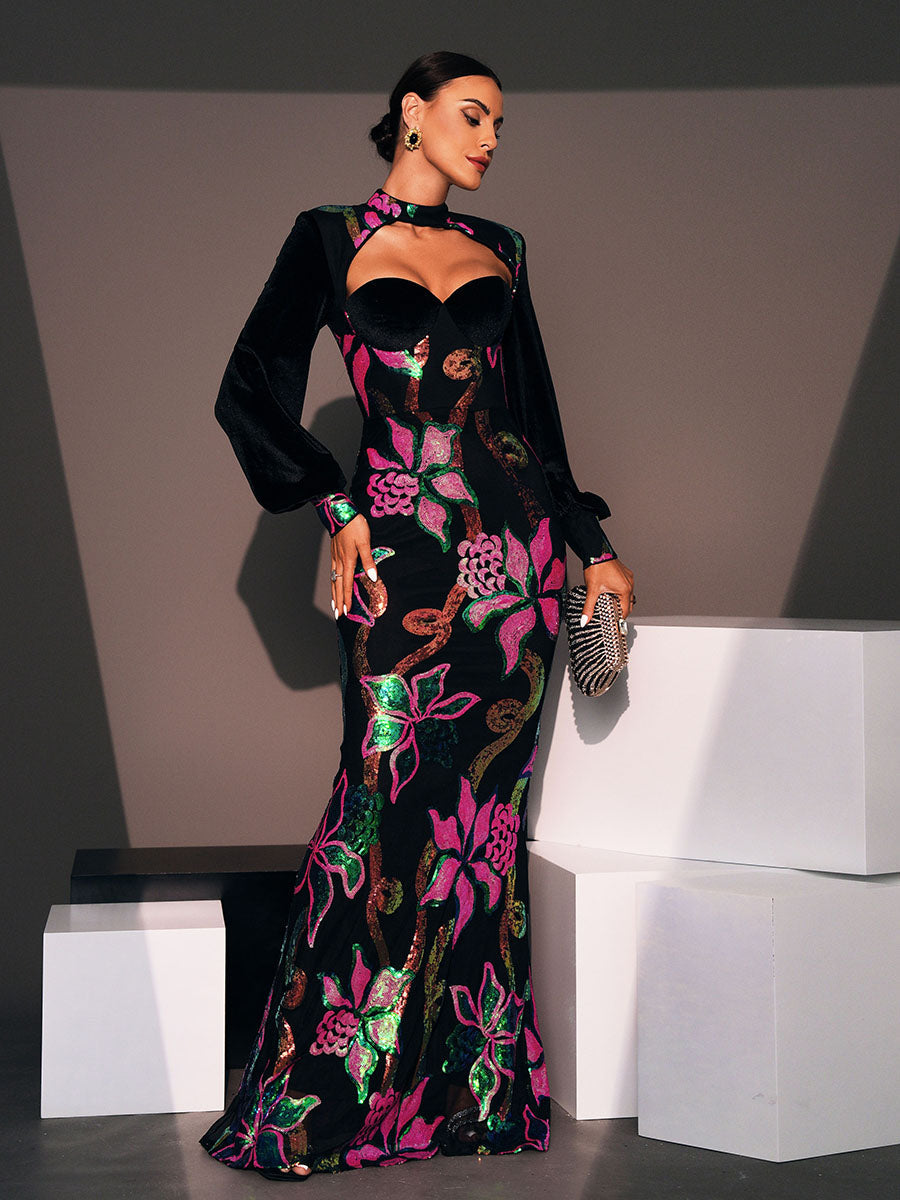 Bu göz alıcı abiye elbise, cesur bir kesime, zarif fener kollara ve ışıltılı payetlerle süslenmiş, vücuda oturan denizkızı silüetine sahip. Herhangi bir resmi etkinlikte dikkat çekmek için mükemmel olan bu elbise, kesinlikle bakışları üzerinize çekecek ve kendinizi bir yıldız gibi hissetmenizi sağlayacak. Bu payetli denizkızı elbiseyle ışıldayın!