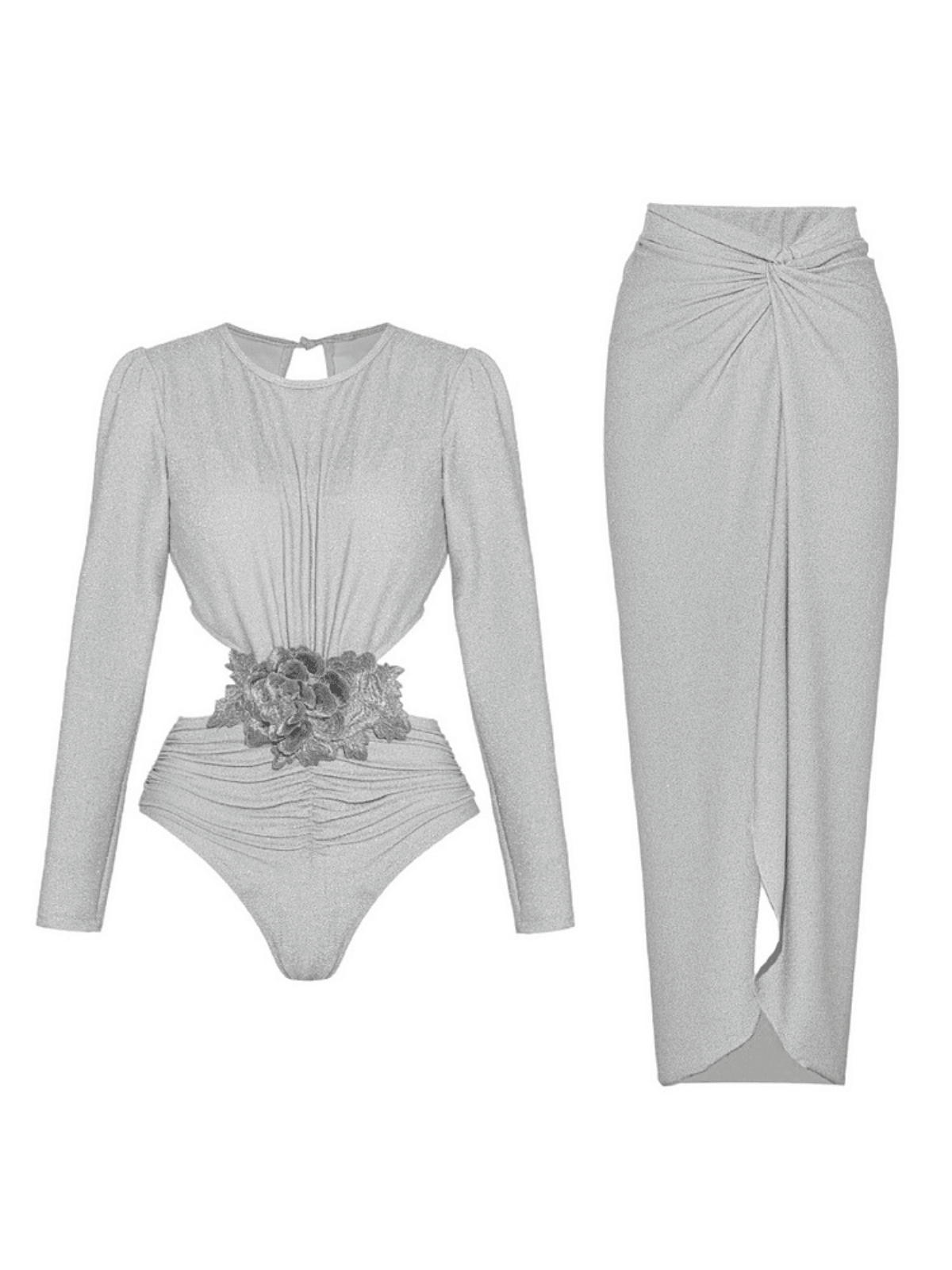 Duru Uzun Kol Çiçek Mayo Pareo İkili Takım