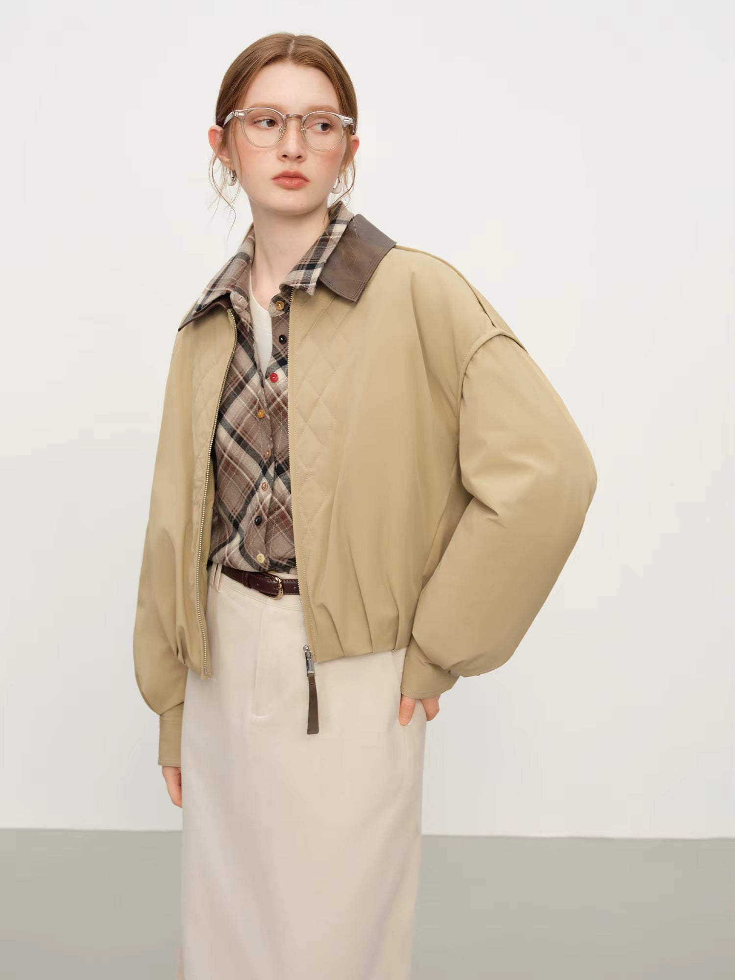 Ekose Panelli Kısa Mont