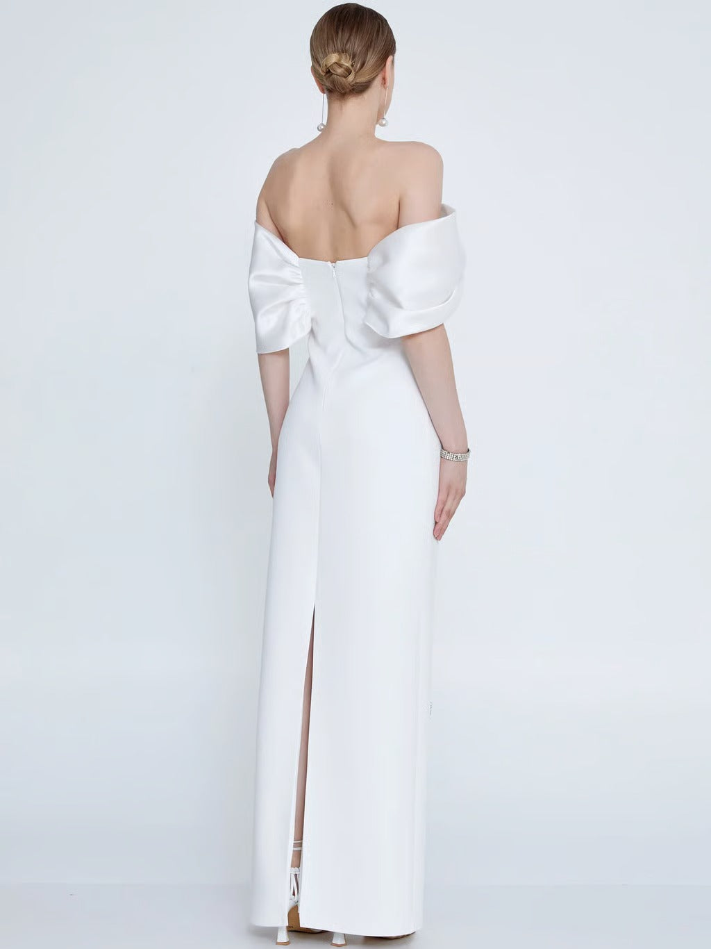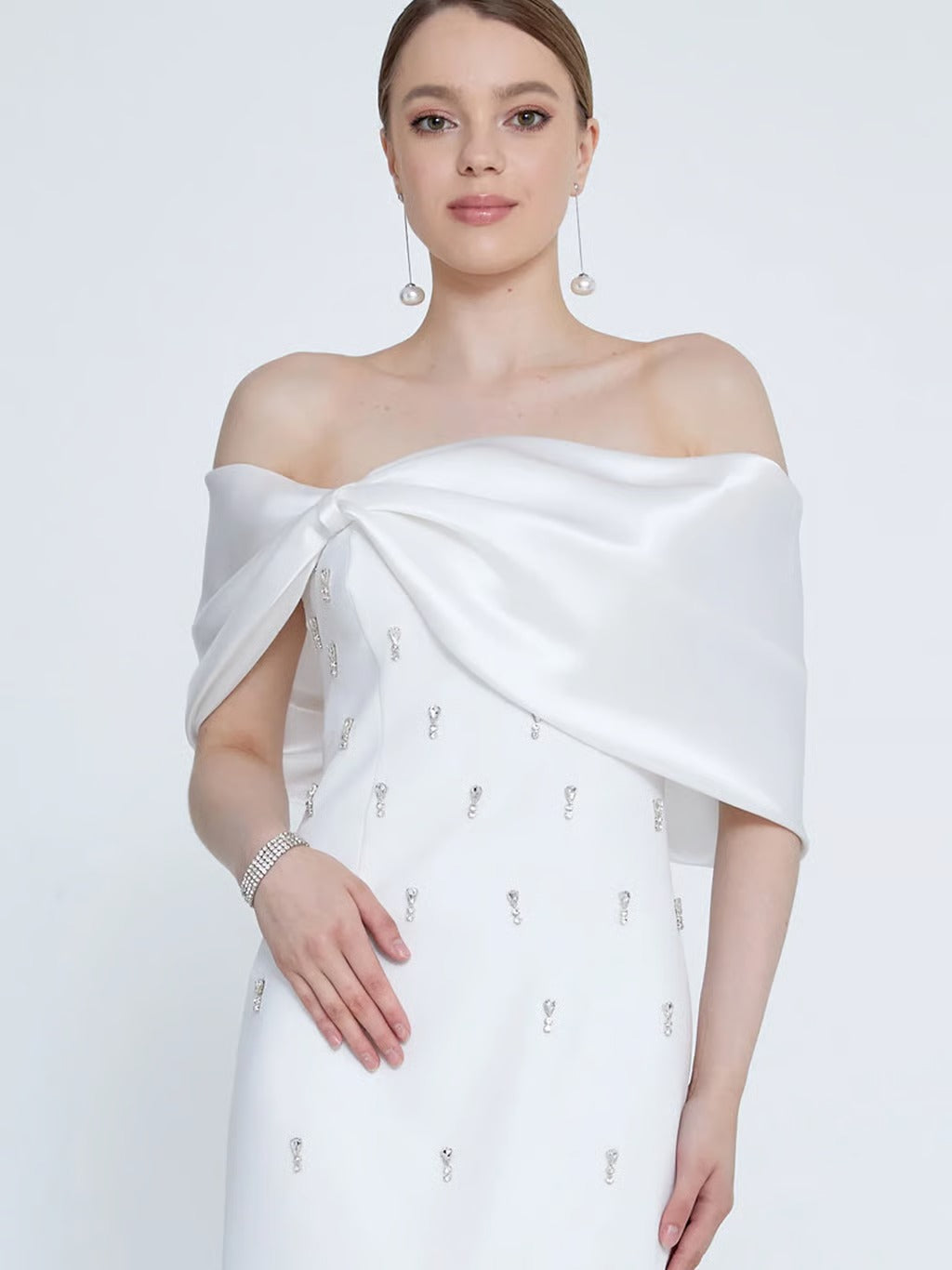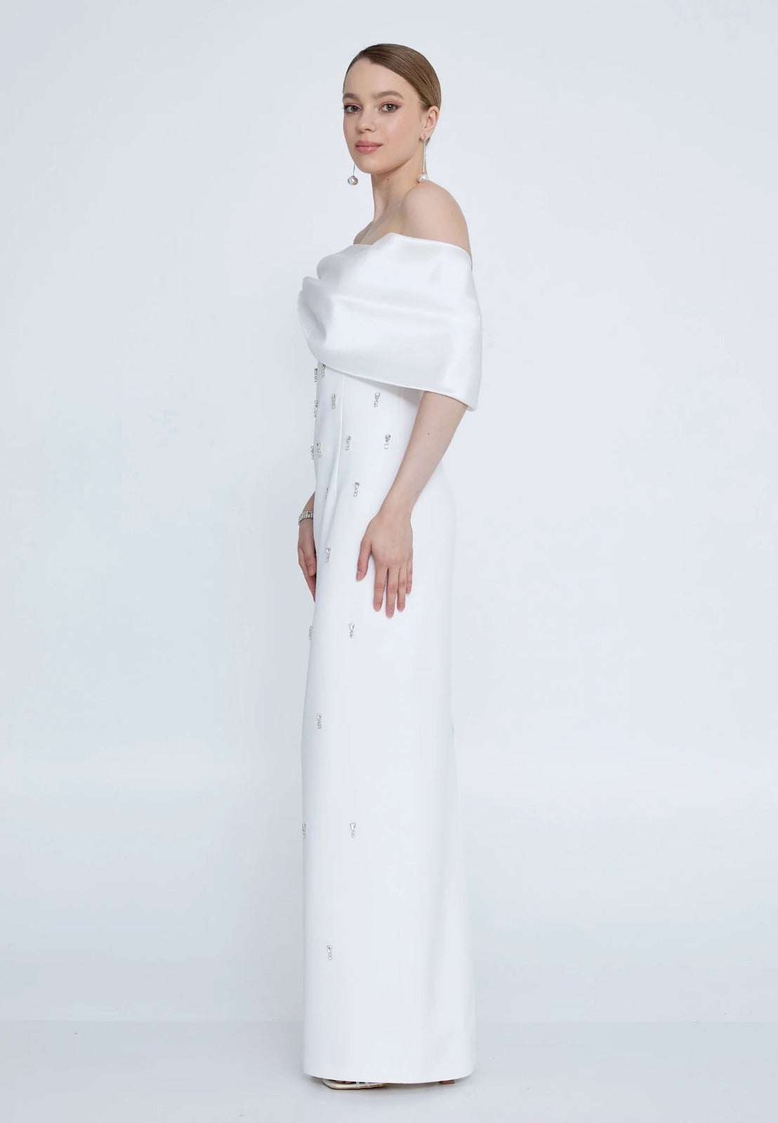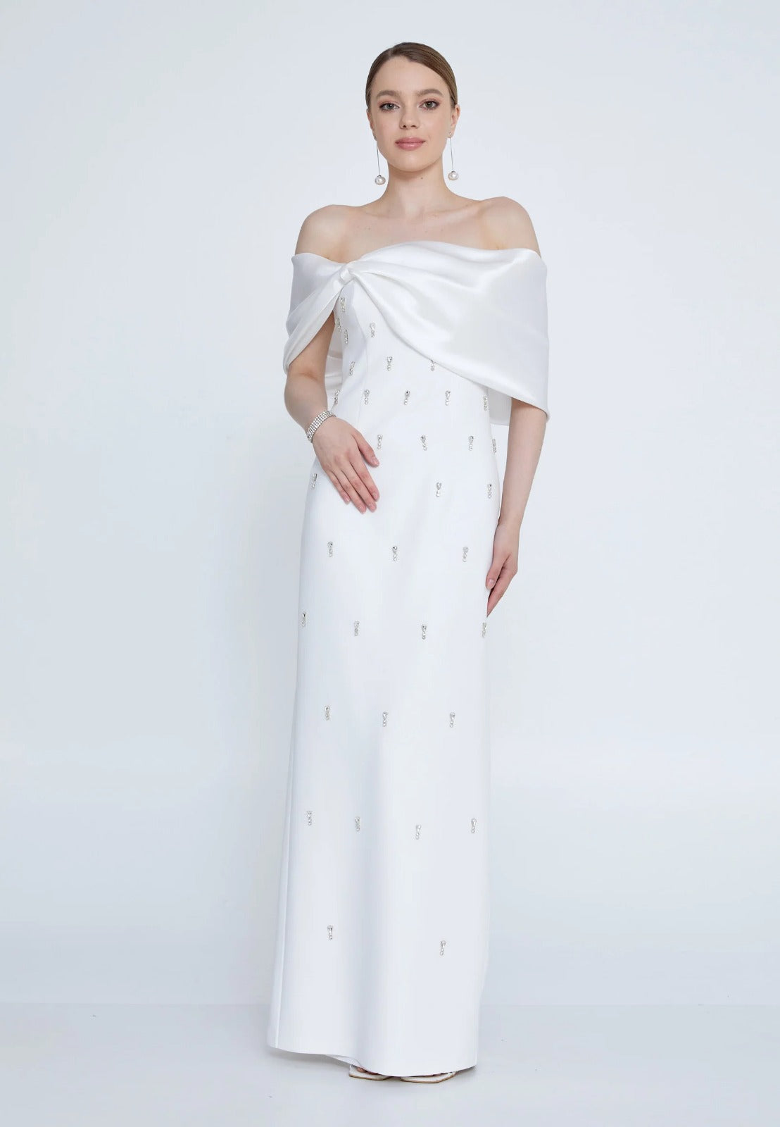 Emly Kristal Taş İşlemeli Maxi Elbise-Beyaz