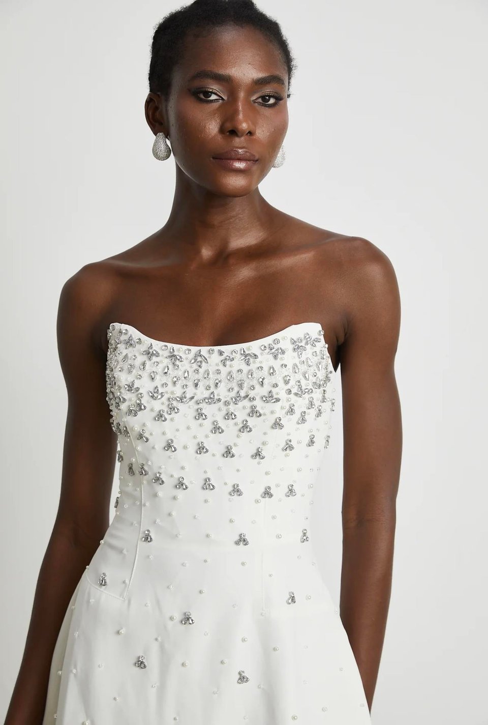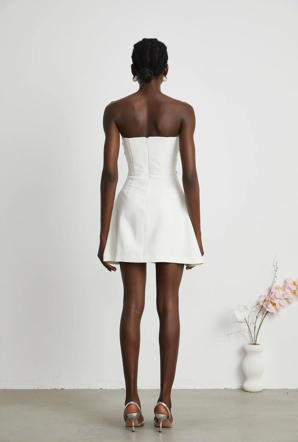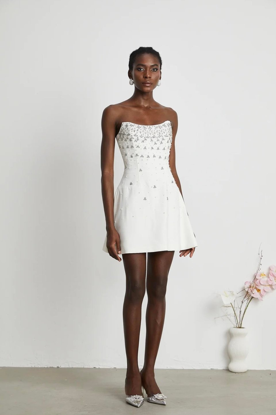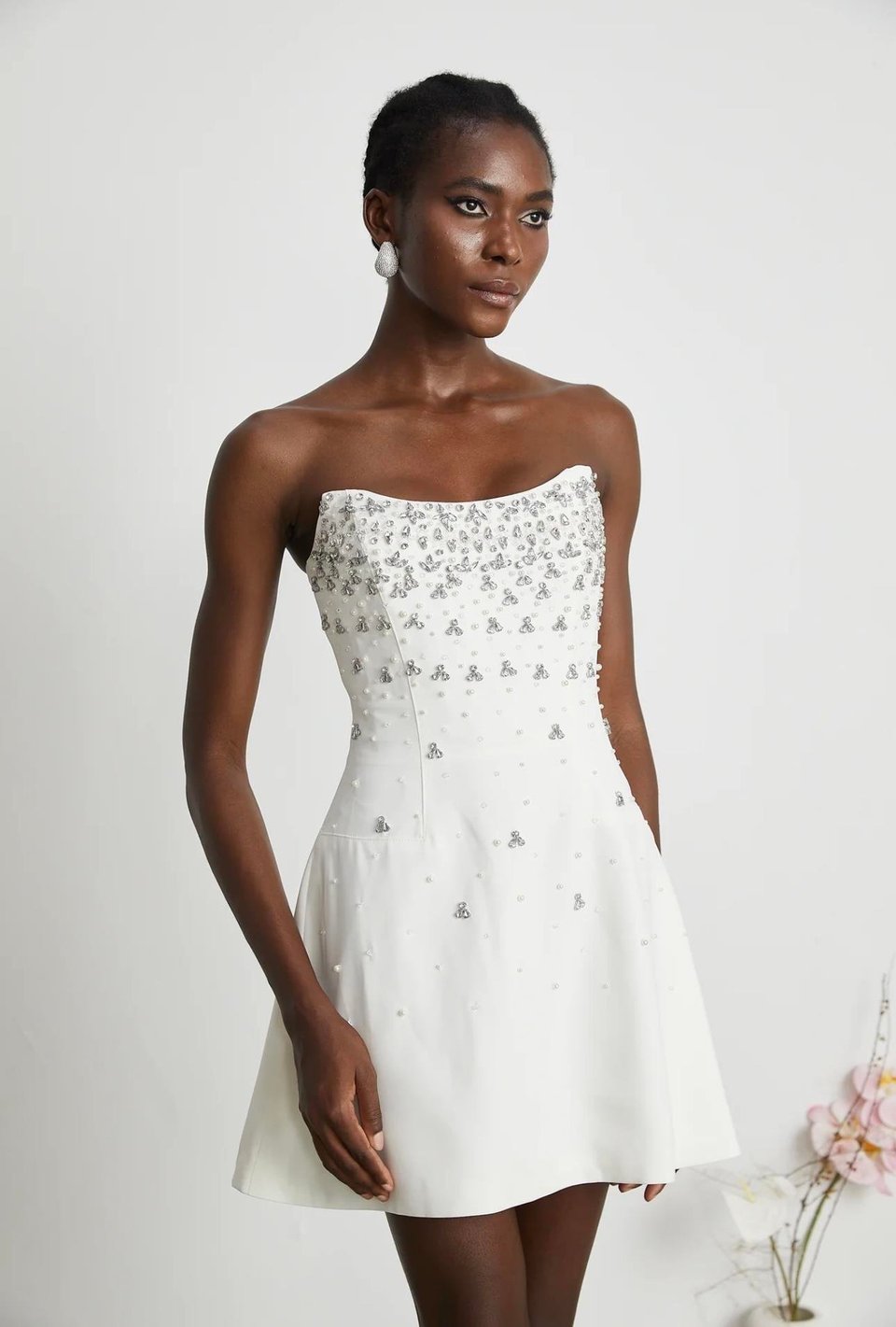 Esdelado Melisande Beyaz Süslemeli Mini Elbise