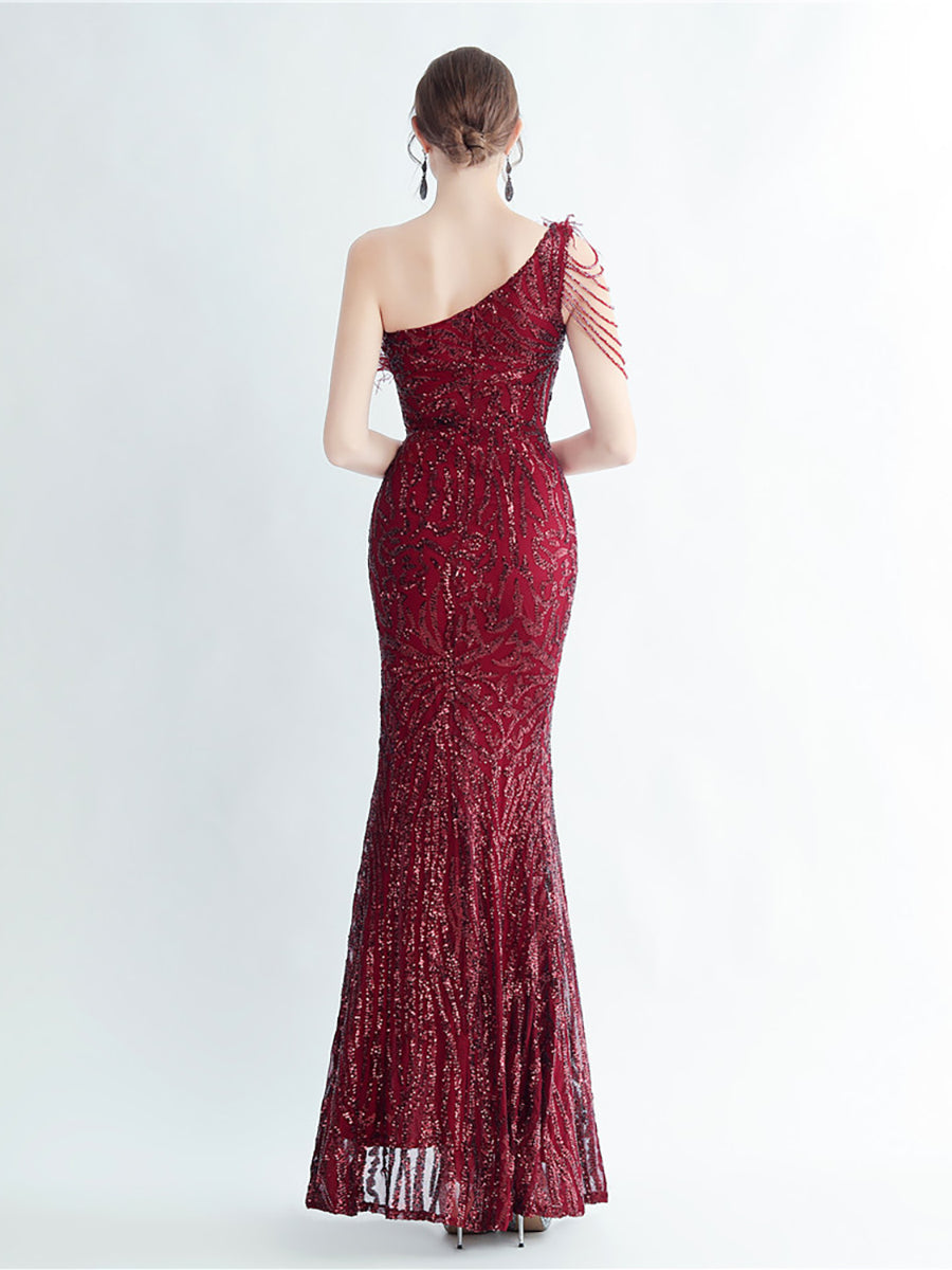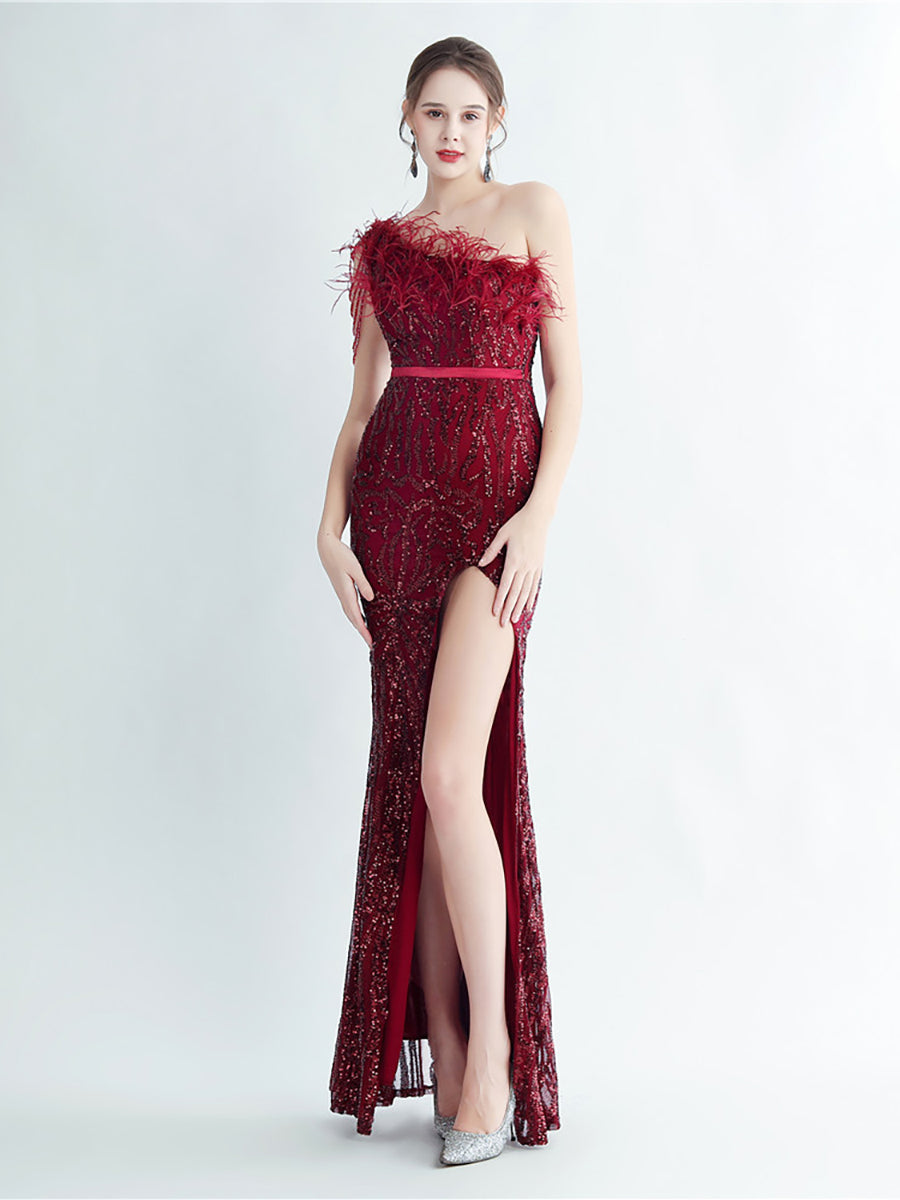Bu zarif, tek omuzlu, tüy, boncuk ve payet detaylı siyah balo elbisesi, göz alıcı bir görünüm için tüyleri, boncukları ve payetleri bir araya getiriyor. Asimetrik yaka benzersiz bir dokunuş katarken, vücuda oturan tasarımı figürünüzü kusursuzca vurguluyor. Balo veya herhangi bir özel etkinlik için mükemmel olan bu elbise, kesinlikle dikkat çekmenizi sağlayacak.