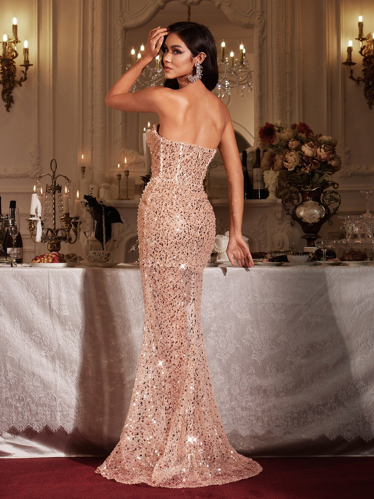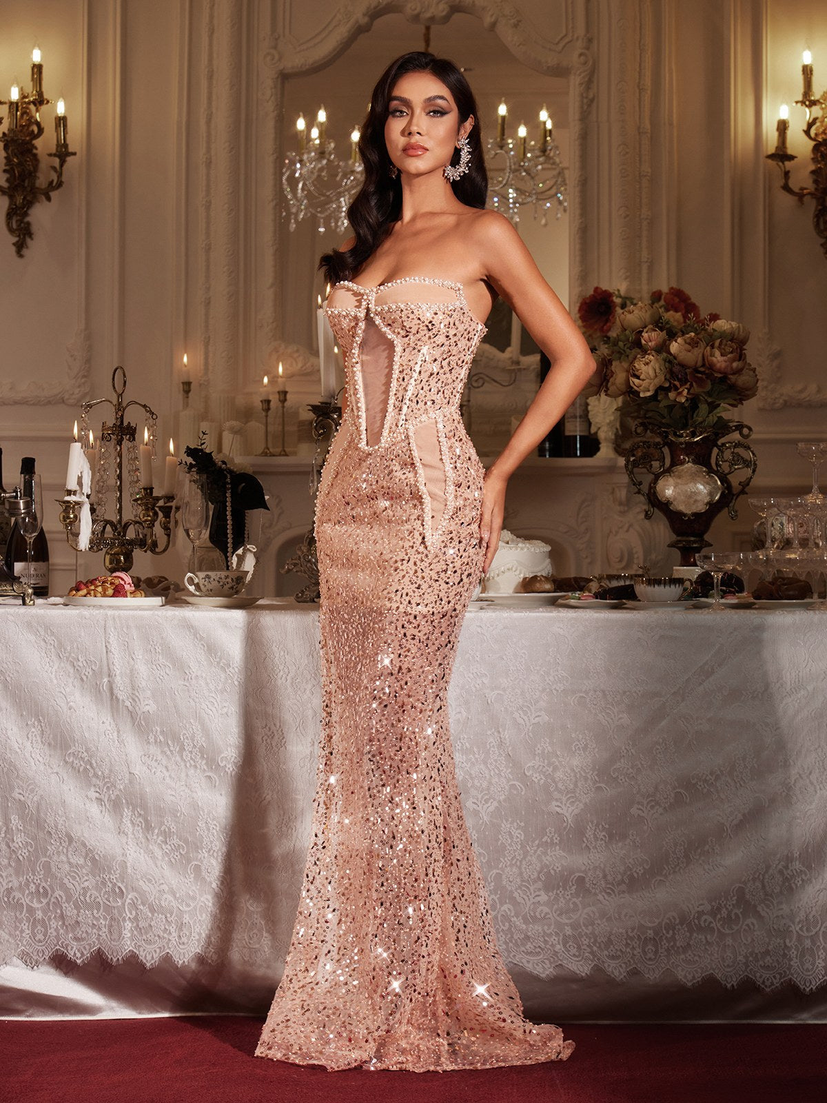 Fionnbarra Straplez İnci Payetli Maxi Elbise