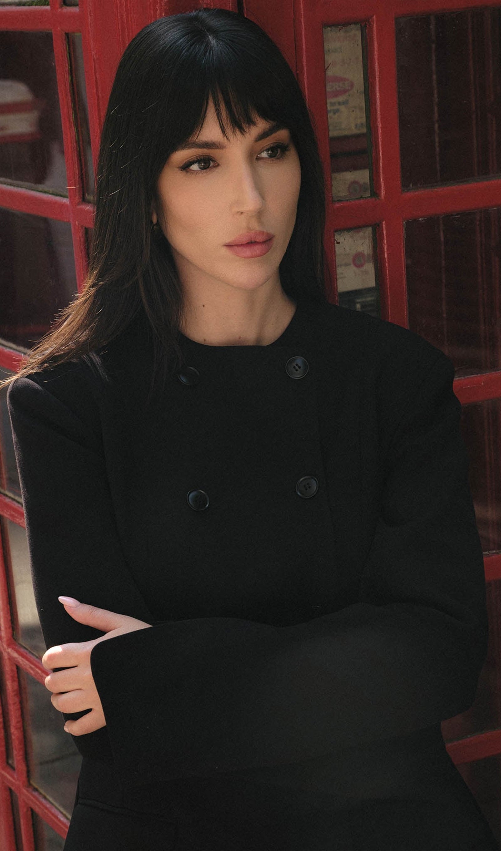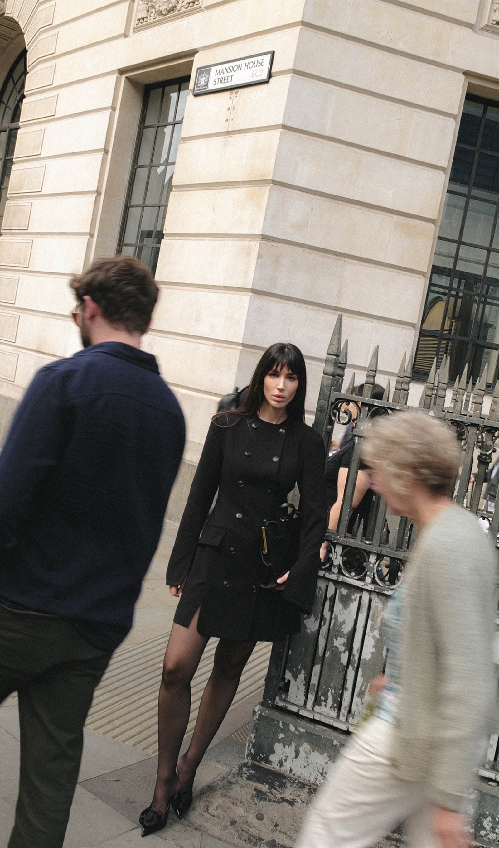 Yuvarlak yakalı, manşetleri yırtmaçlı düz uzun kollu ve hafif kloş etekli, ağırbaşlı mini ceket elbise. Elbise yoğun süet kumaştan üretilmiştir ve tonal düğmelerle bağlanır.