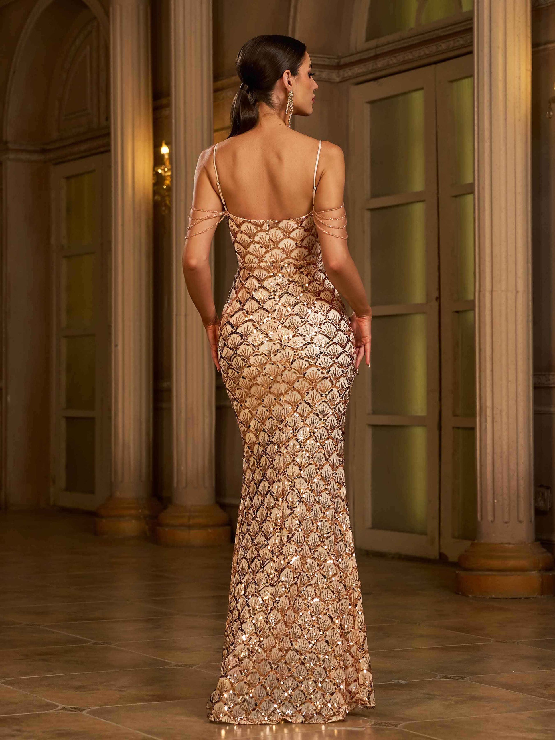 Glam Payetli Spagetti Maxi Elbise
