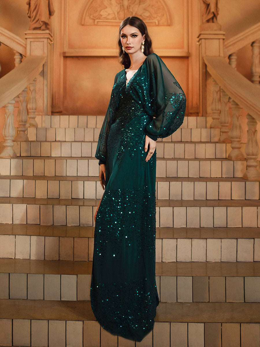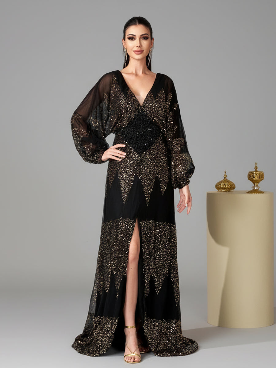 Bu fener kollu, V yakalı, yüksek yırtmaçlı mezuniyet elbisesiyle göz kamaştırın! Zarif fener kolları ve çekici yüksek yırtmacıyla tüm gece boyunca bakışları üzerinize çekeceksiniz. V yaka, sofistike bir dokunuş katarken, şık siyah renk hem zamansız hem de çok yönlüdür. Bu çarpıcı elbiseyle mezuniyet deneyiminizi bir üst seviyeye taşıyın.