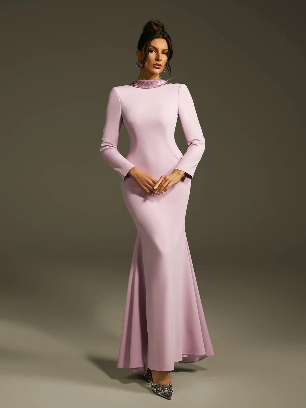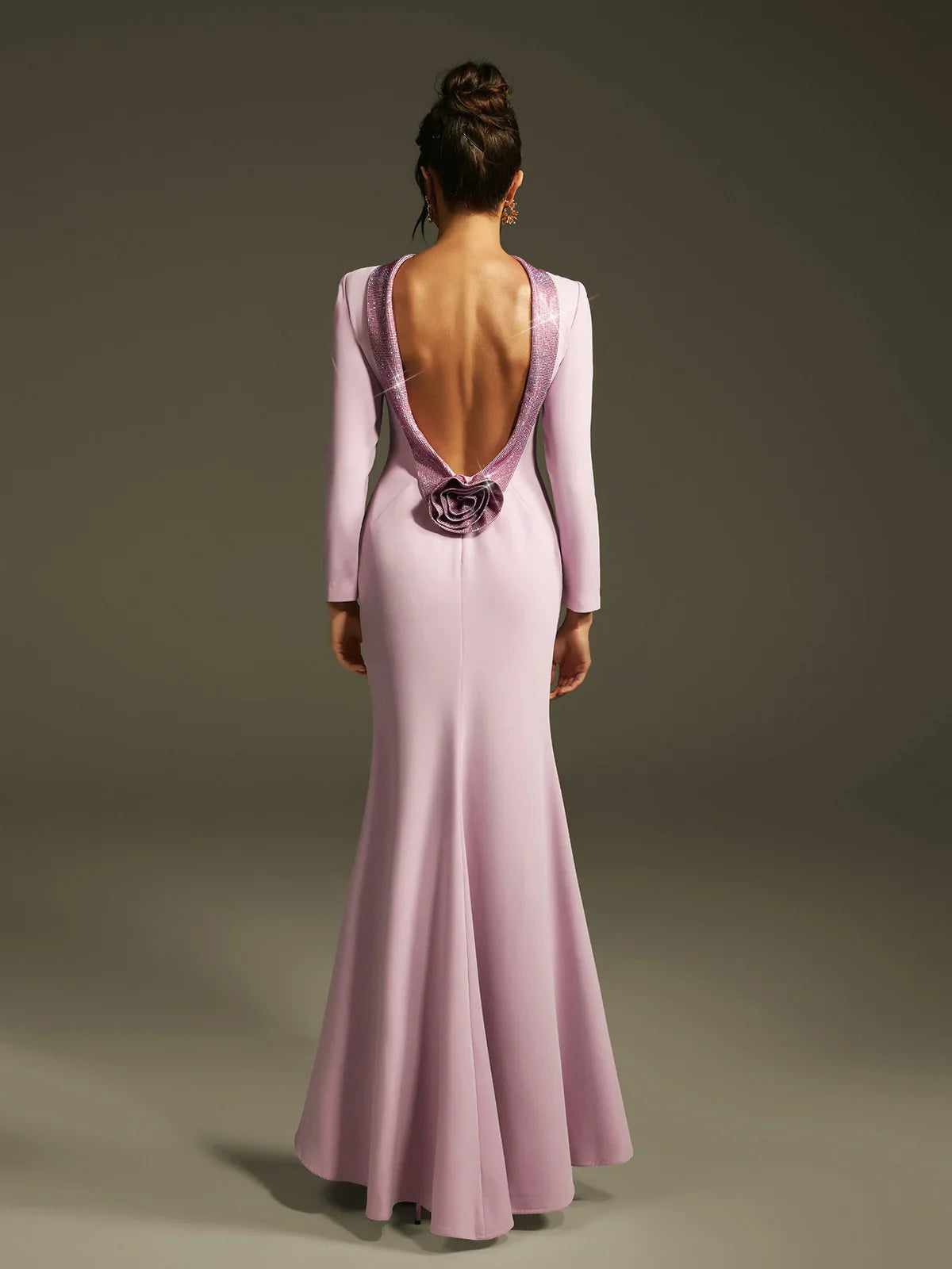 Leylak Kristal Gül Sırtı Açık Maxi Elbise