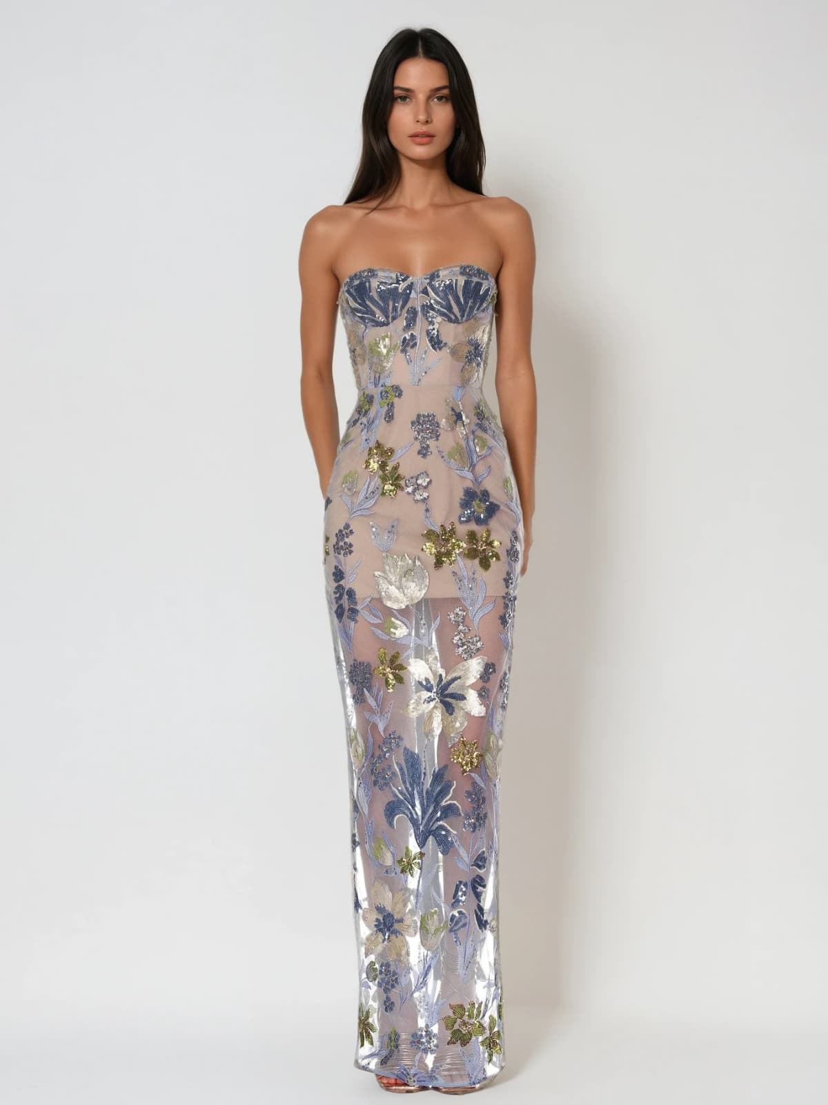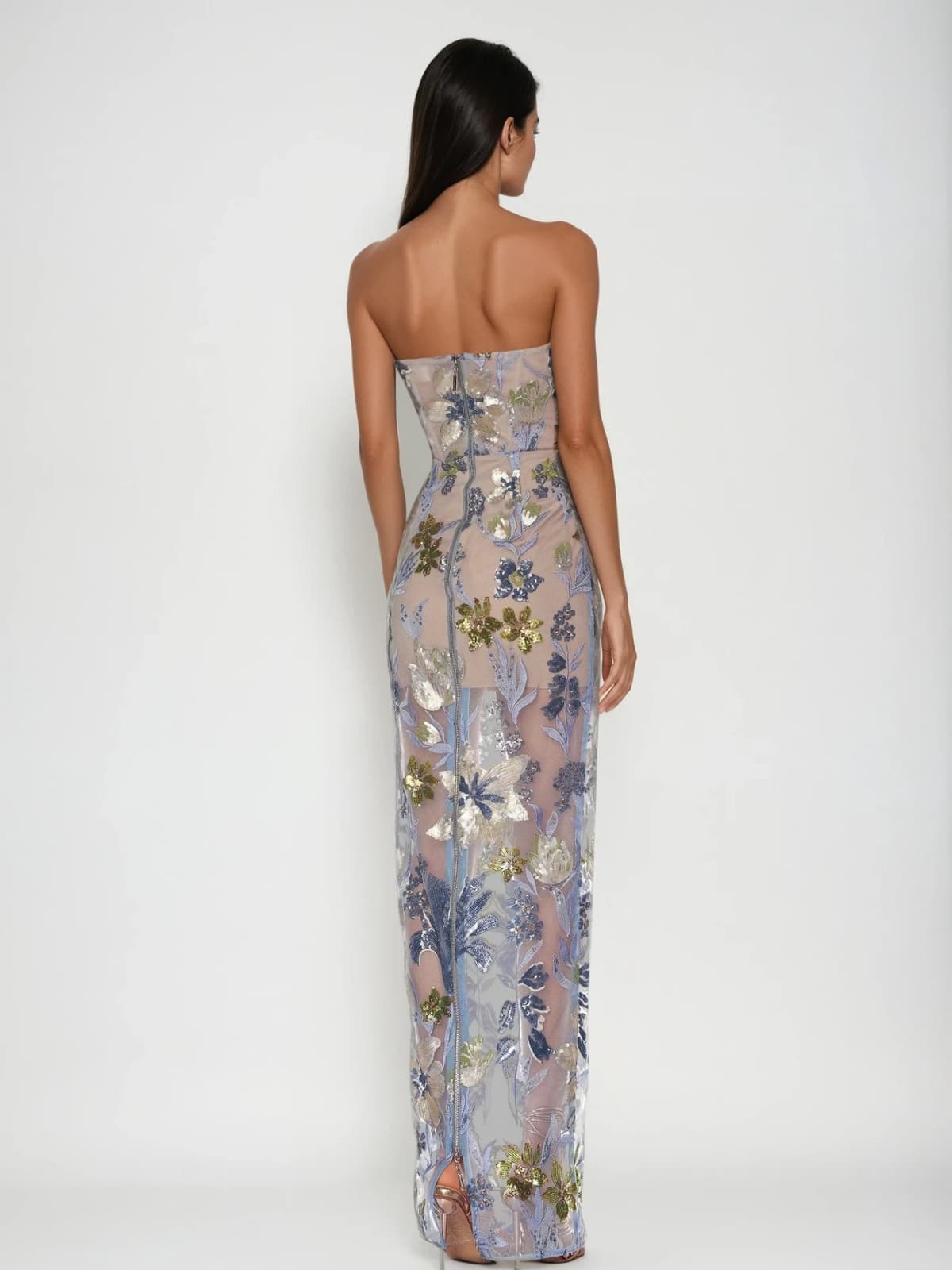 Nakoa Straplez Payet İşlemeli Mavi Maxi Elbise